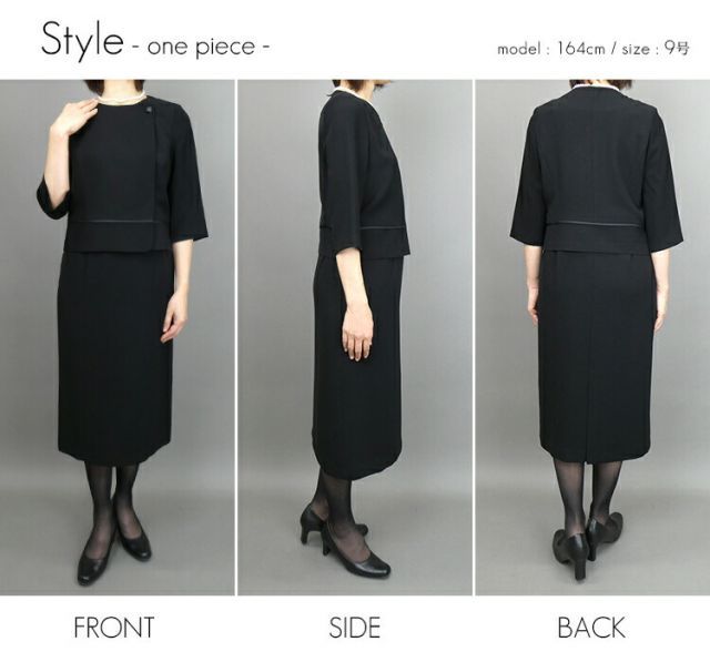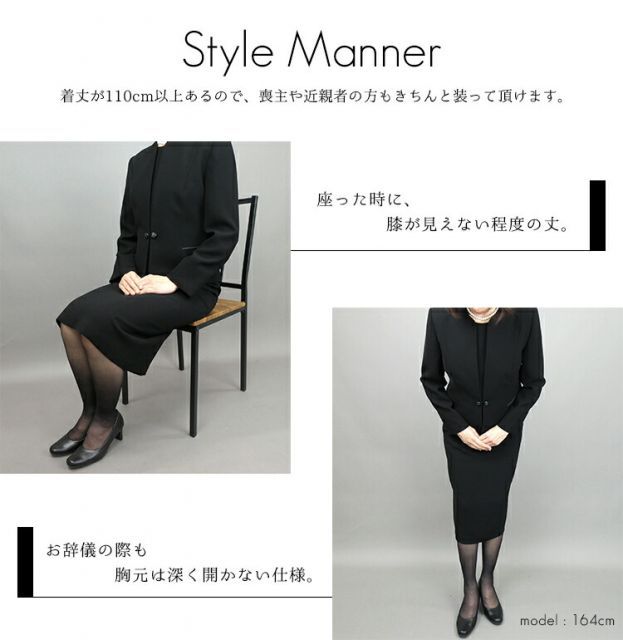 ・しっかり長さをとったワンピースの着丈は約110cmありますので、喪主や近親者のお立場の方もきちんと装っていただけます。