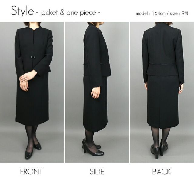 ・喪服・礼服用ジャケット、ワンピースがセットになった2点セットスーツです。