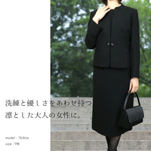 ジャケットとワンピースの2点スーツアンサンブル全シーズン対応黒7号-17号喪服礼服葬式卒業式法事レディースファッションブラックフォーマルスーツフォーマルスーツスカートスーツレディース2点スーツお宮参り