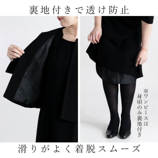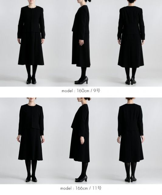 ・しっかり長さをとったワンピースの着丈は9号で約108cmありますので、喪主や近親者のお立場の方もきちんと装っていただけます。