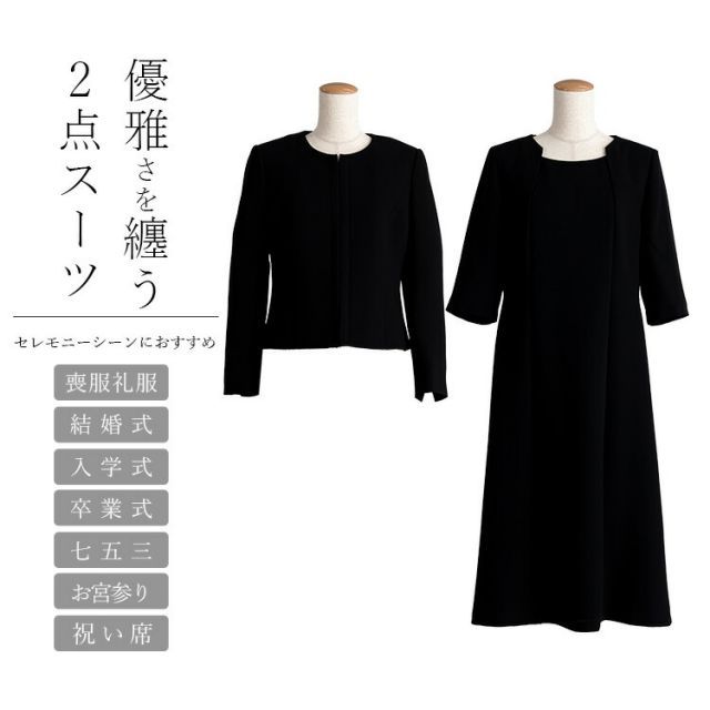 ・喪服・礼服用ジャケット、ワンピースがセットになった2点セットスーツです。