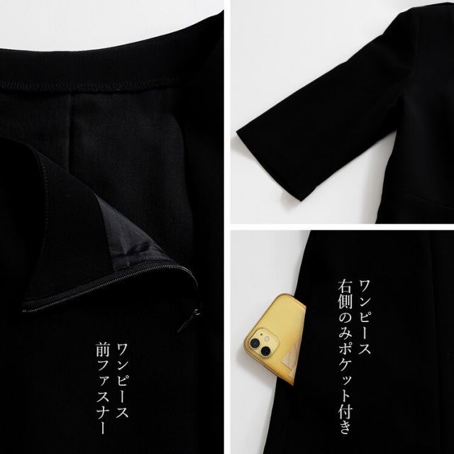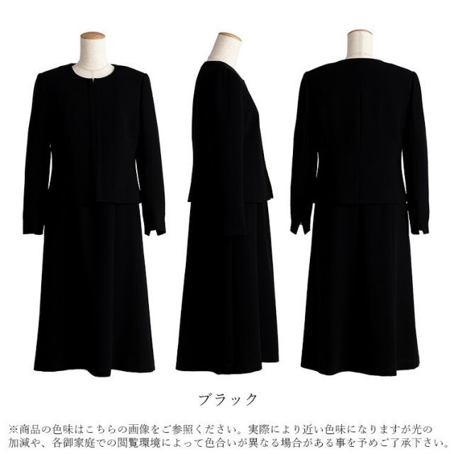 前開きワンピーススーツ レディース ブラックフォーマル 礼服 喪服 アンサンブル 2点セット ジャケット 洗える ノーカラー 長袖 お宮参り 卒園式 卒業式 法事 葬儀 黒 9号 11号 13号 15号 フォーマルスーツ セレモニー オールシーズン ママスーツ