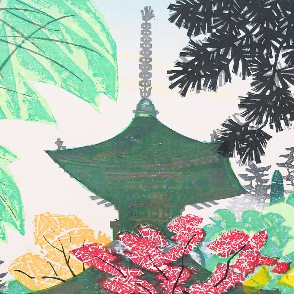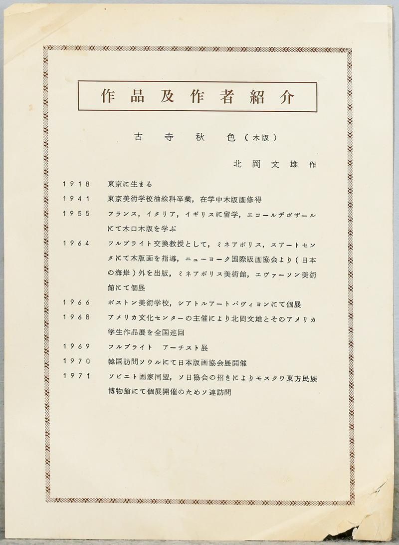 真作 WISH 北岡文雄 古寺秋色 木版画 約8号 1973年作 直筆サイン 証明シール 〇光と風の版風景 勲四等旭日小綬章 25102781