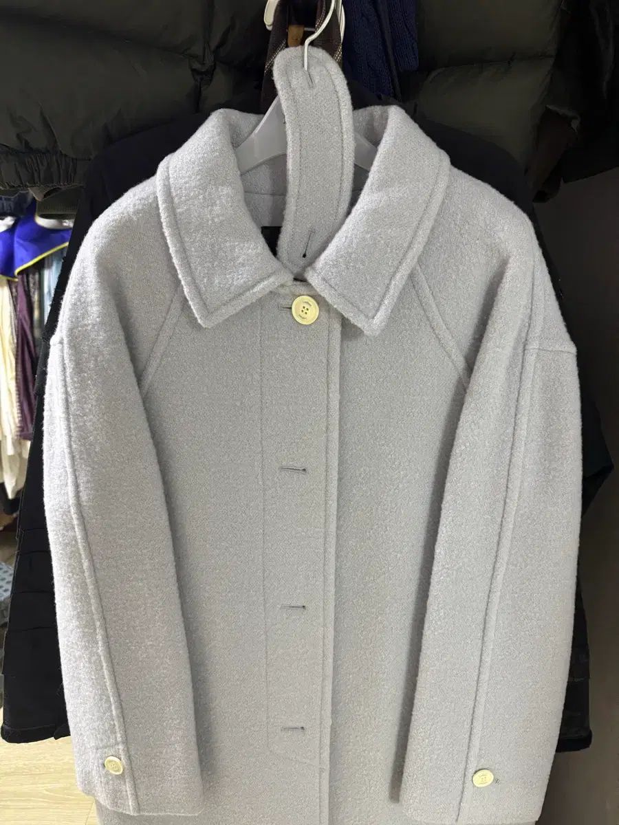 カラーがとっても かわいい ライトブルーのブークレ ハーフ コートです!!