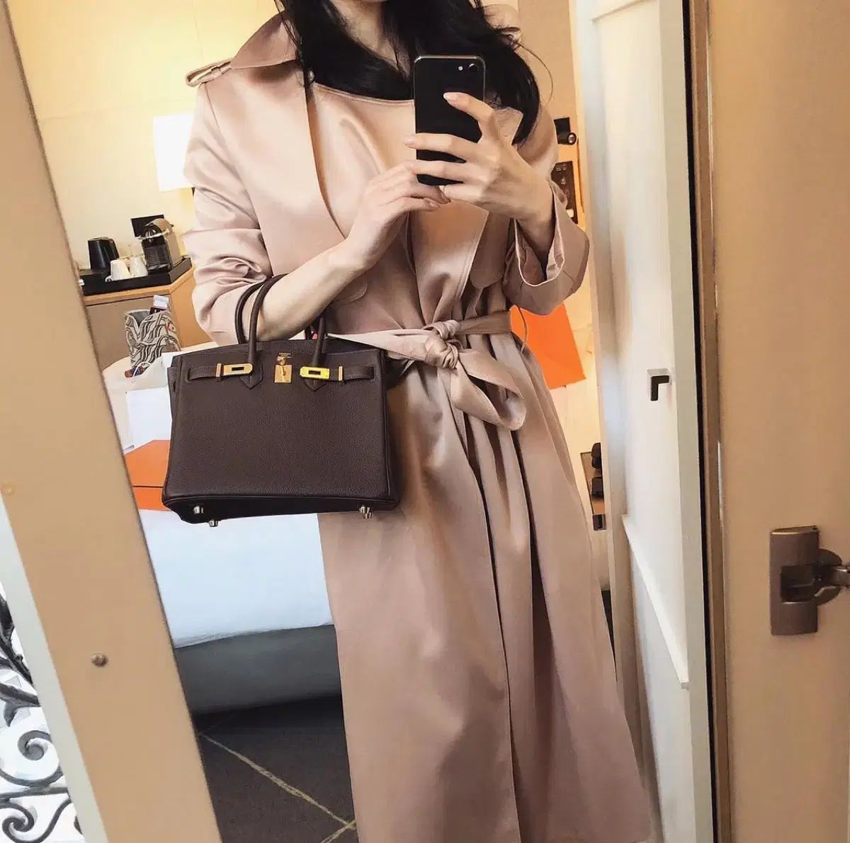 新商品製作 THE LAURENT シルキートレンチ GOLD ベージュ