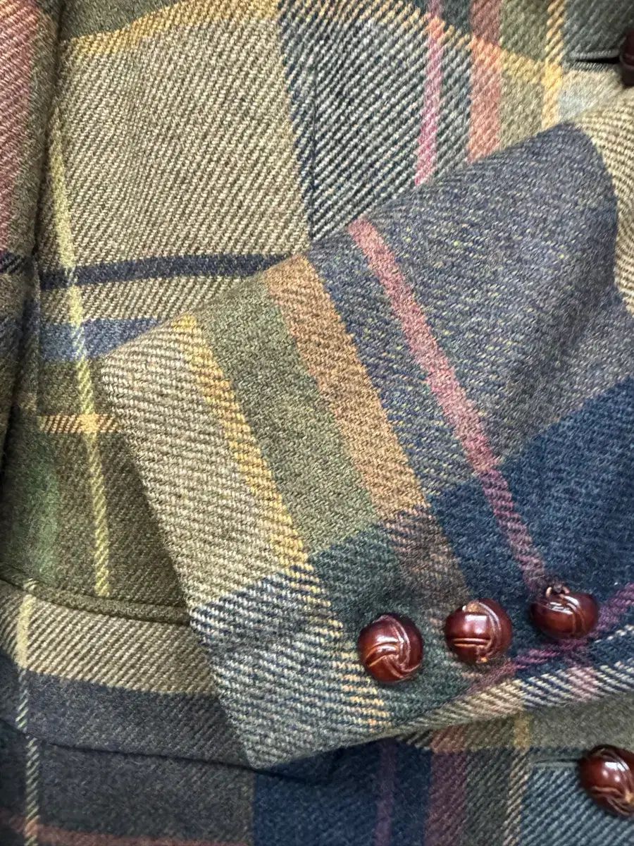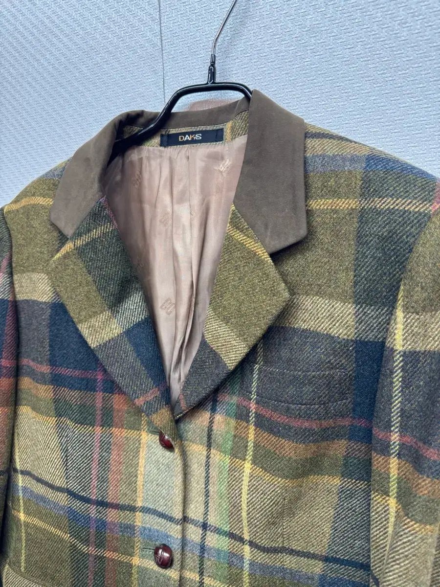 •服紹介:DAKSのシグネチャーライン、ウールジャケットです。カーキとブラウンの組み合わせに、とても調和のとれたパターンを持つ高級ブレーザーです。