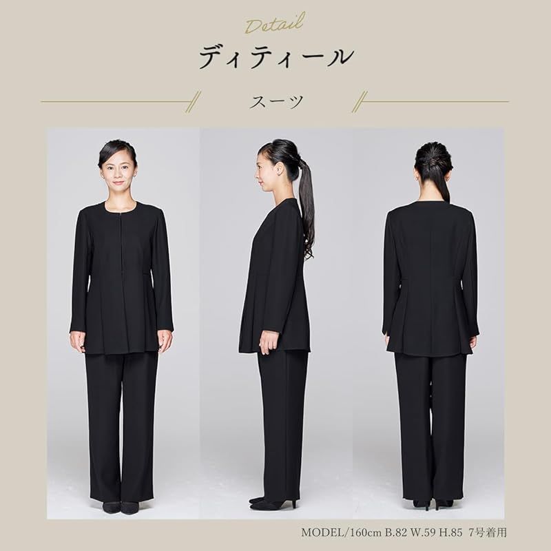 SORITEAL 喪服 パンツスーツ ロングジャケット レディース ブラックフォーマル 冠婚葬祭 礼服 葬式 法事 30代 40代 50代 2点セット セットアップ ブラック 9号 1
