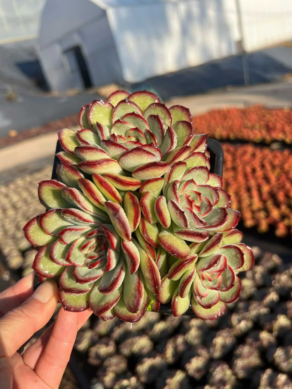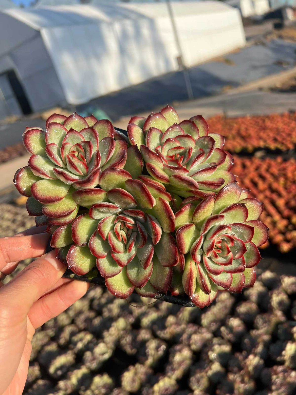 柔らかな光を浴びて輝く、エケベリア特有のロゼットが美しい多肉植物です。