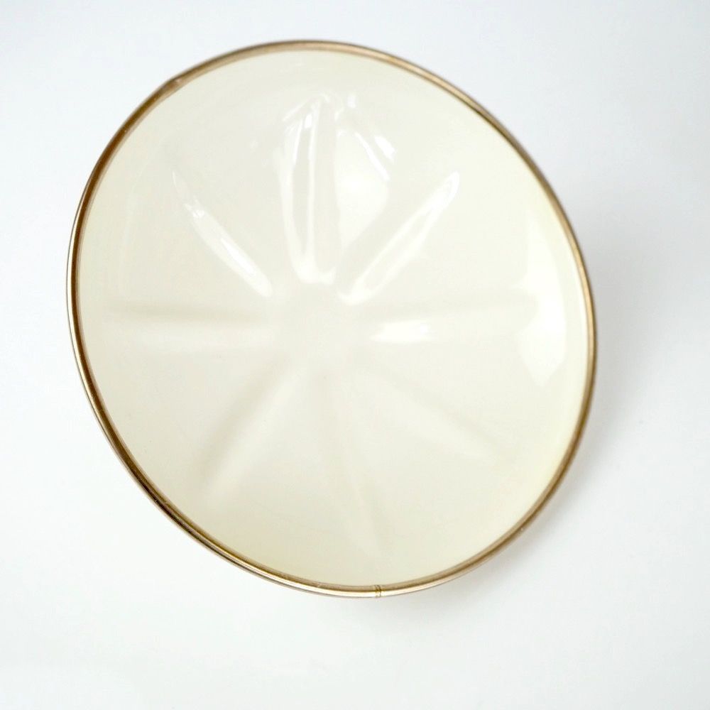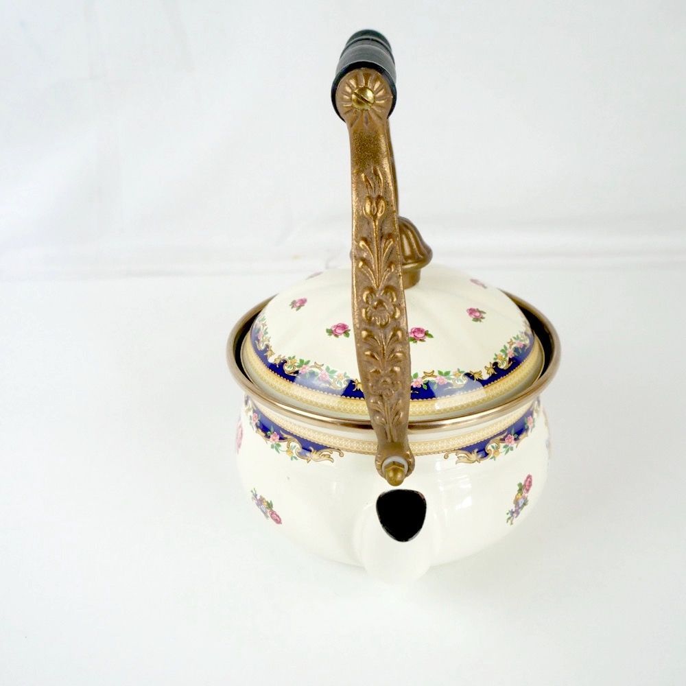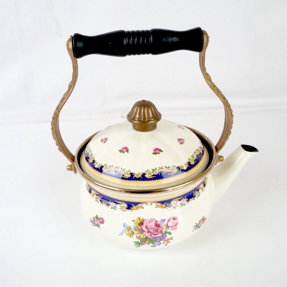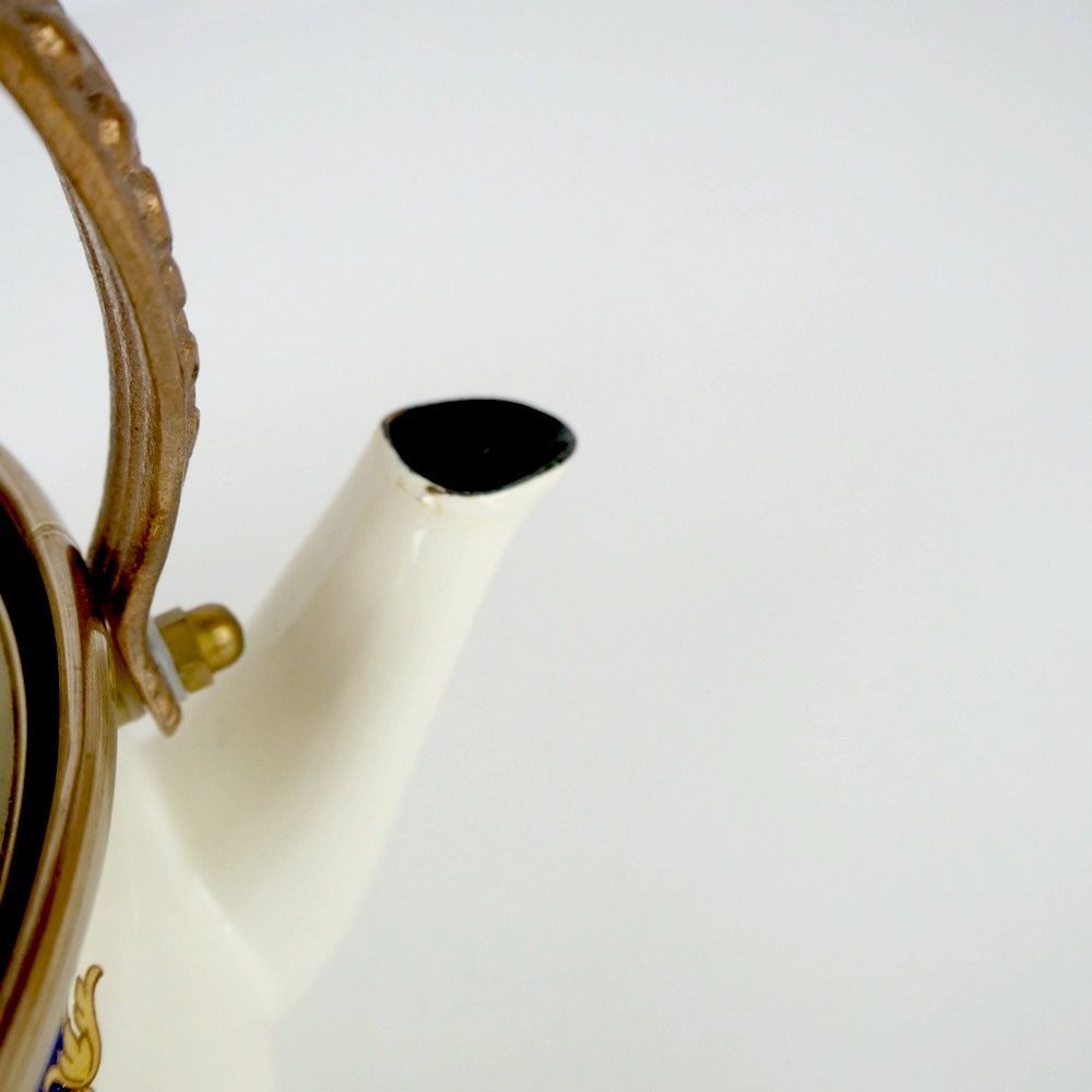 西ドイツ時代のエナメル(ホーロー)ブランド「ASTA」のポットです。厚みのあるホーローとクラシカルな真鍮風ハンドル、花柄デコレーションが印象的。