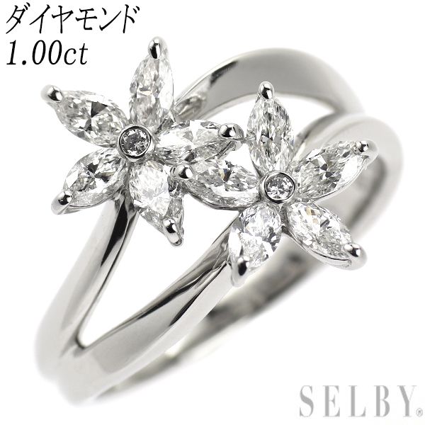 トータル1.00ctのダイヤモンドを贅沢に使用した、エレガントなプラチナリングです。マーキスカットを花びらに見立てた華やかなフラワーモチーフデザイン。同じ大きさのモチーフを向かい合わせたトワエモア風が魅力的です。大人の可愛らしさを引き出す、リッチなフラワーモチーフジュエリーをお楽しみください。