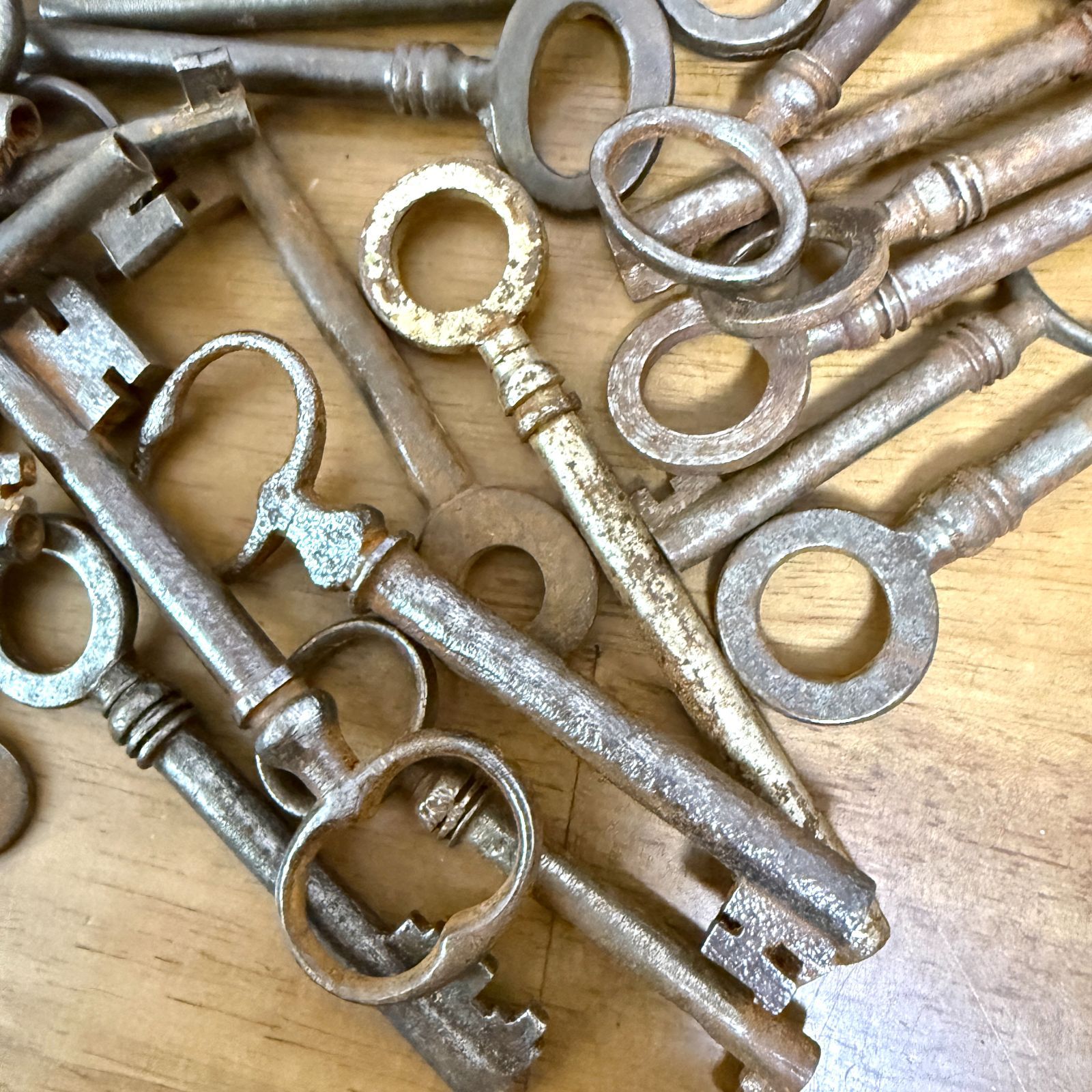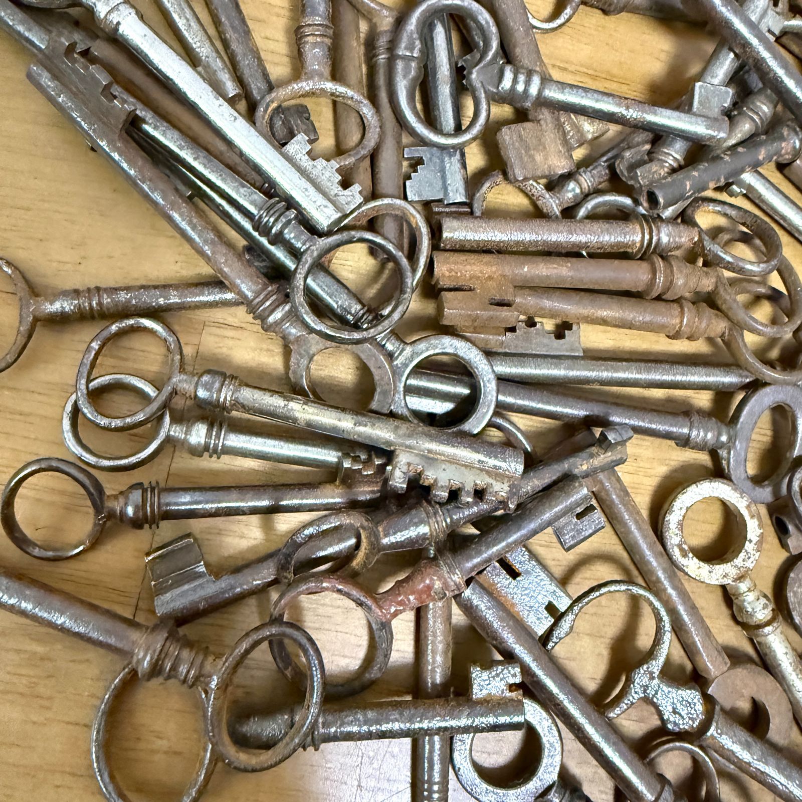 ヨーロッパの蚤の市やブロカントを思わせる、味わい深いアンティーク調ヴィンテージキーを60本まとめた卸・仕入れ向けロットです。