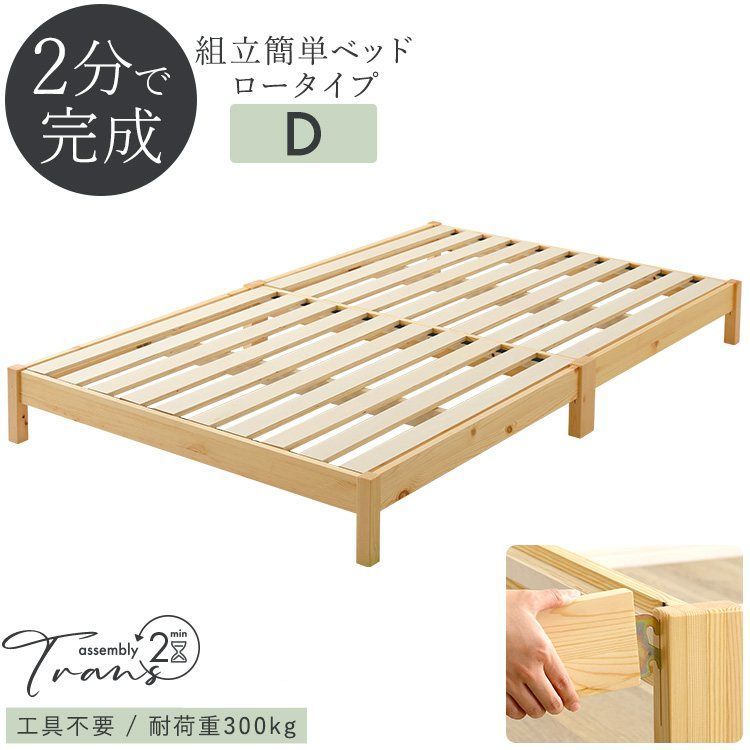 組立簡単ベッド Trans-トランズ- ダブルサイズ TRS-D ベッド すのこベッド ローベッド LVLすのこ 工具不要 2分で完成 簡単組立 通気性 頑丈性 耐荷重300kg 天然木 パイン コンパクト梱包 D ナチュラル 7893
