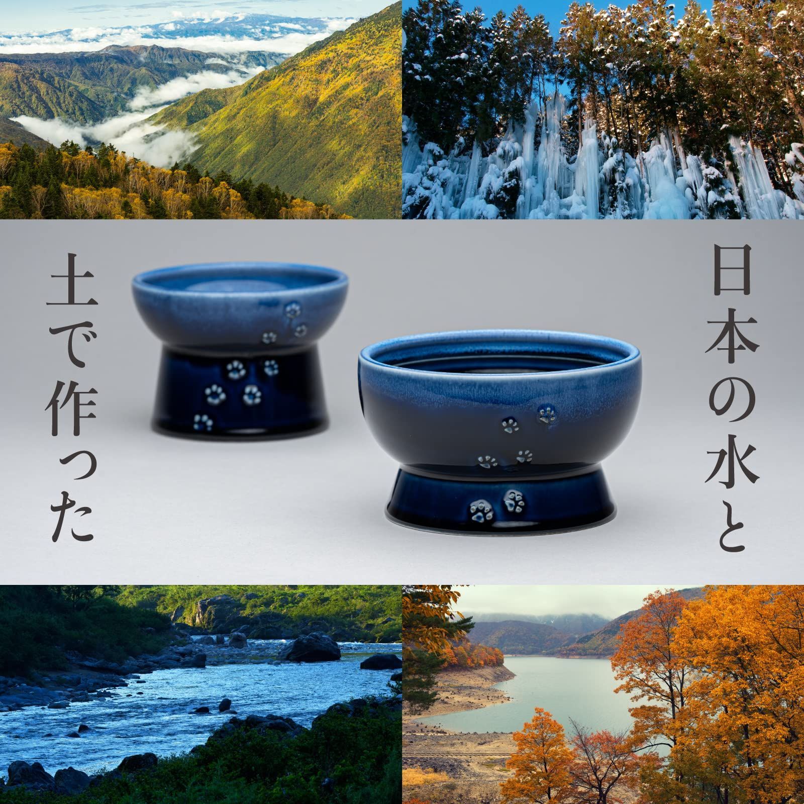 猫壱 猫用 脚付ボウル 美濃焼 日本製(ブルー ウォーター)