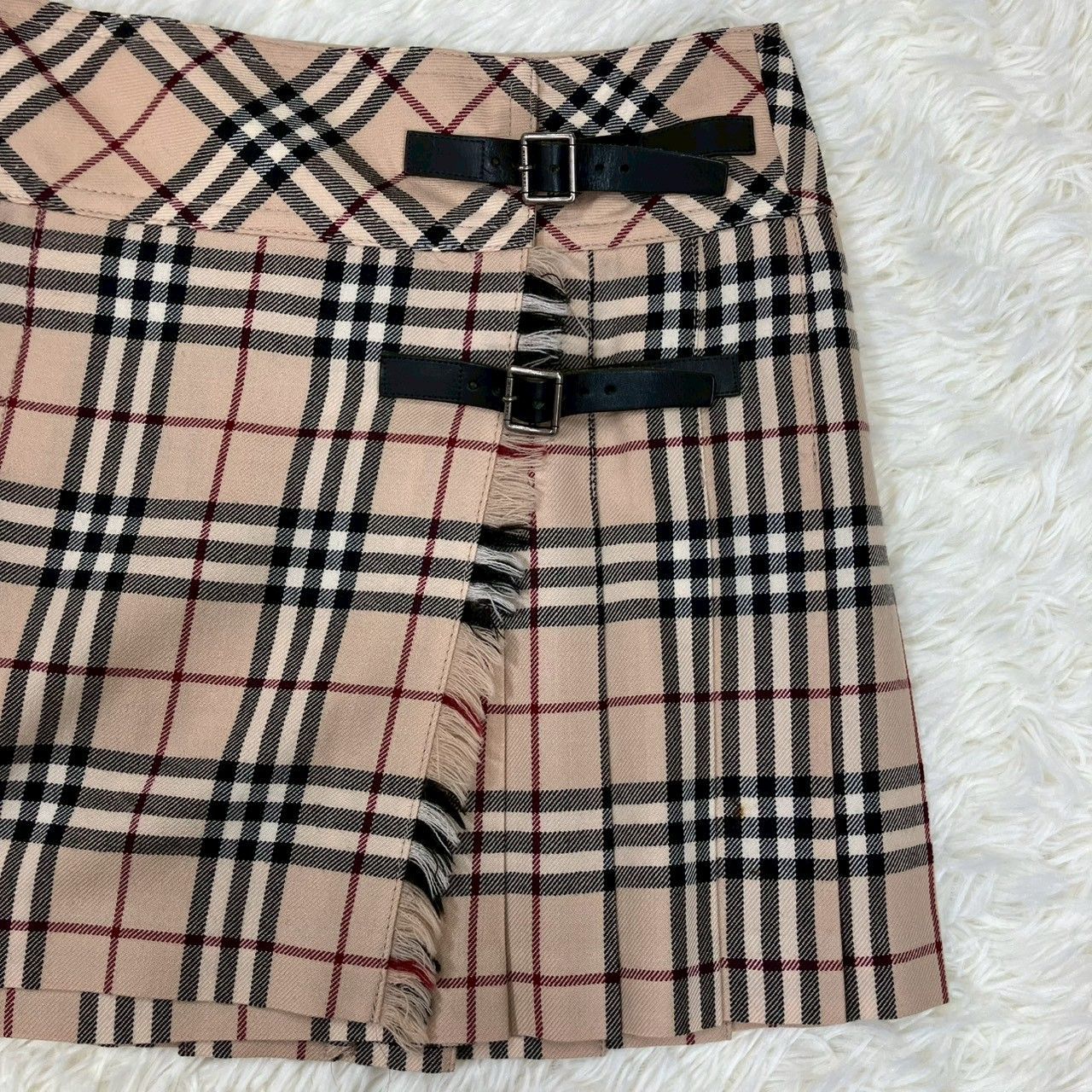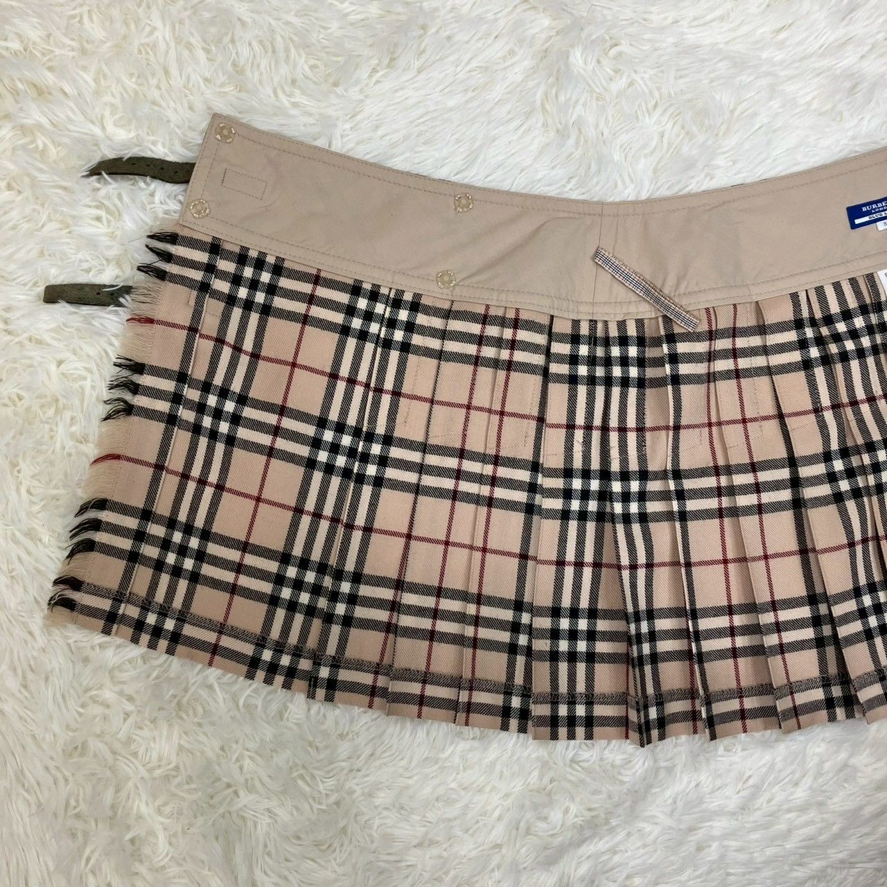 バーバリーブルーレーベル ミニスカート 巻きスカート ノバチェック プリーツ ベルト 裏地無し ベージュ Mサイズ相当 お値段交渉を受け付けます