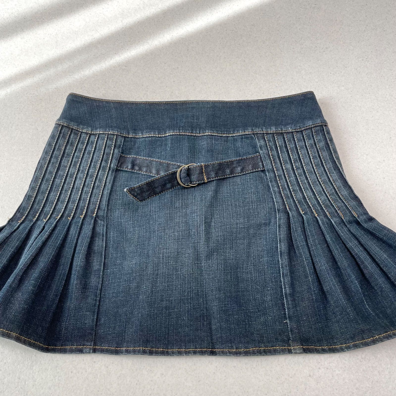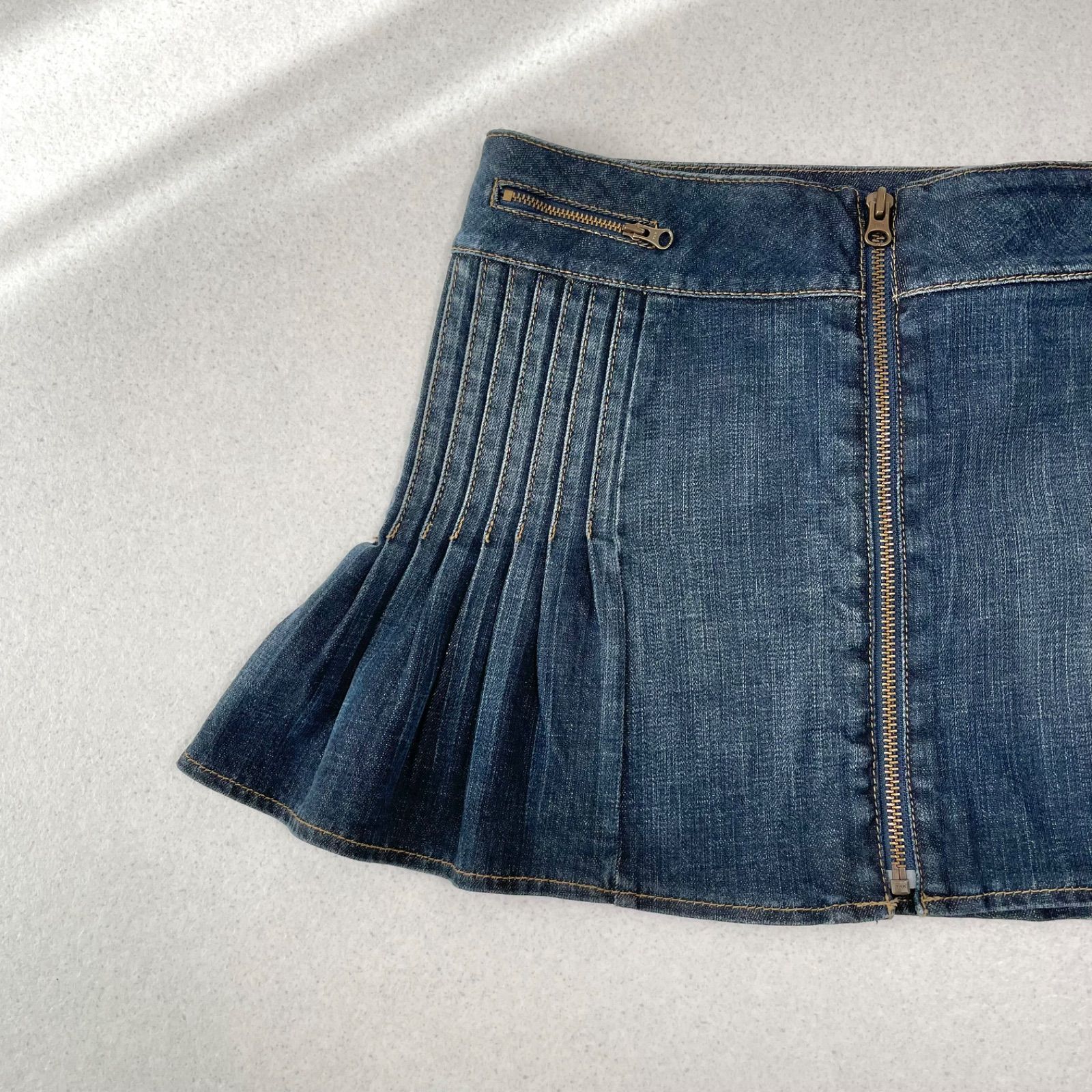 タック デニム プリーツ ミニスカート