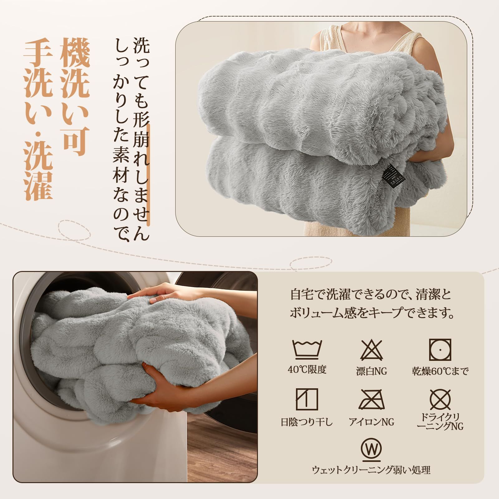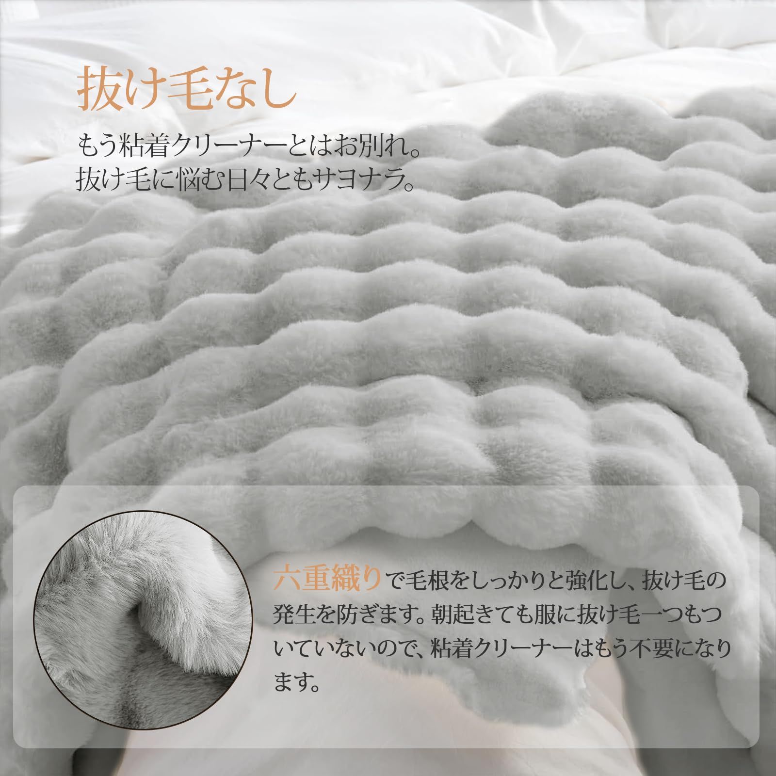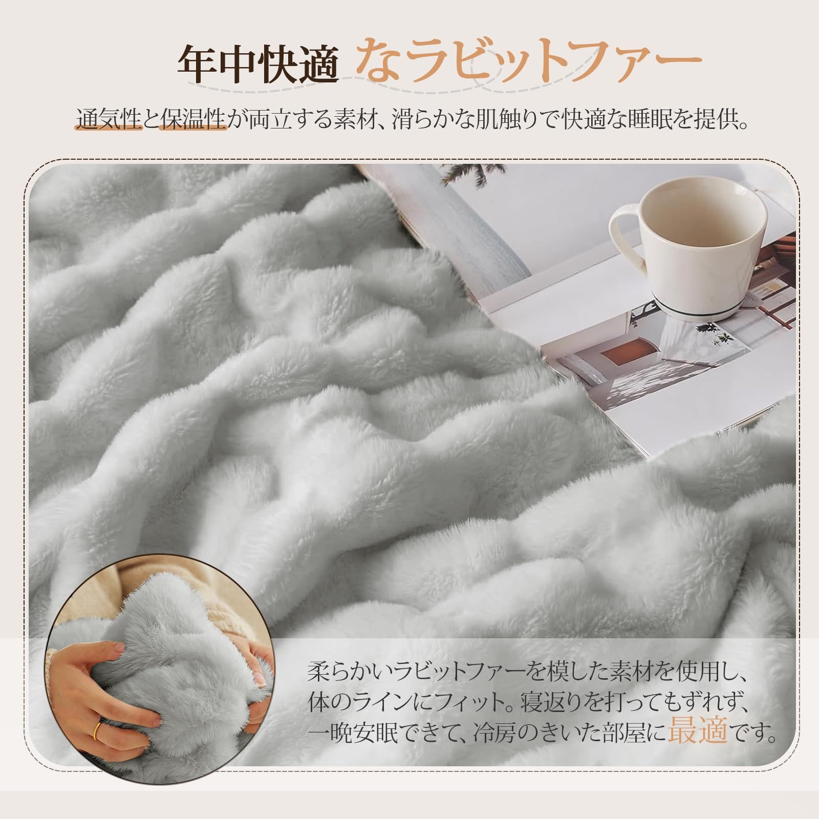 【毛布仕様】上層:ラビット調ファー 下層:ミンクファー調ファー サイズ:180*200cm カラー:グレー 重さ:3.48kg 洗濯機で洗えるブランケット仕様。