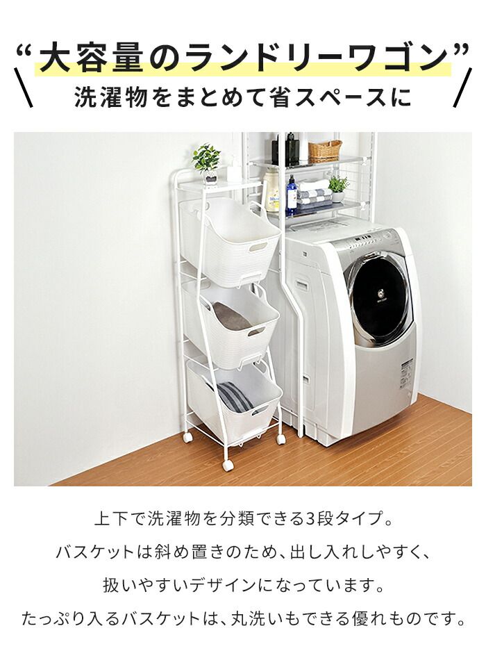ランドリーワゴン バスケット付き 3段 幅38 高さ97.5cm ランドリーバスケット キャスター付き 洗濯かご 洗濯物入れ 収納ワゴン 丸型 ソフト やわらか 大容量 便利 おしゃれ 新生活 一人暮らし