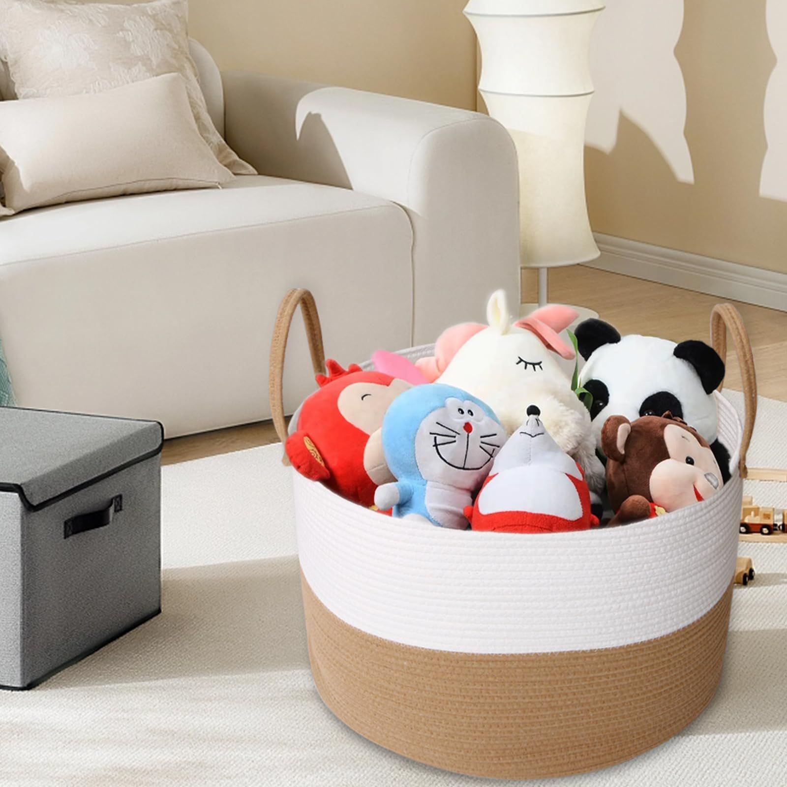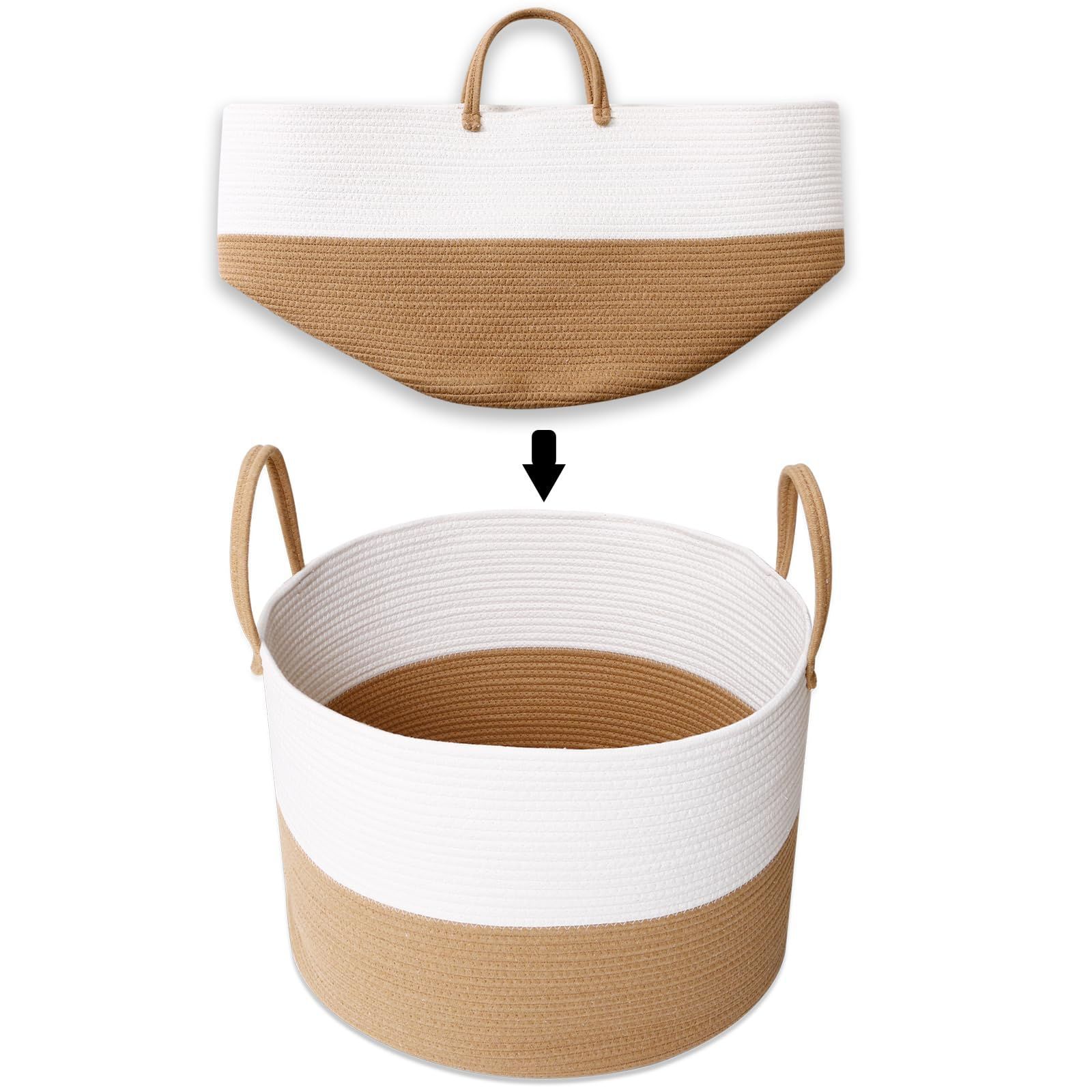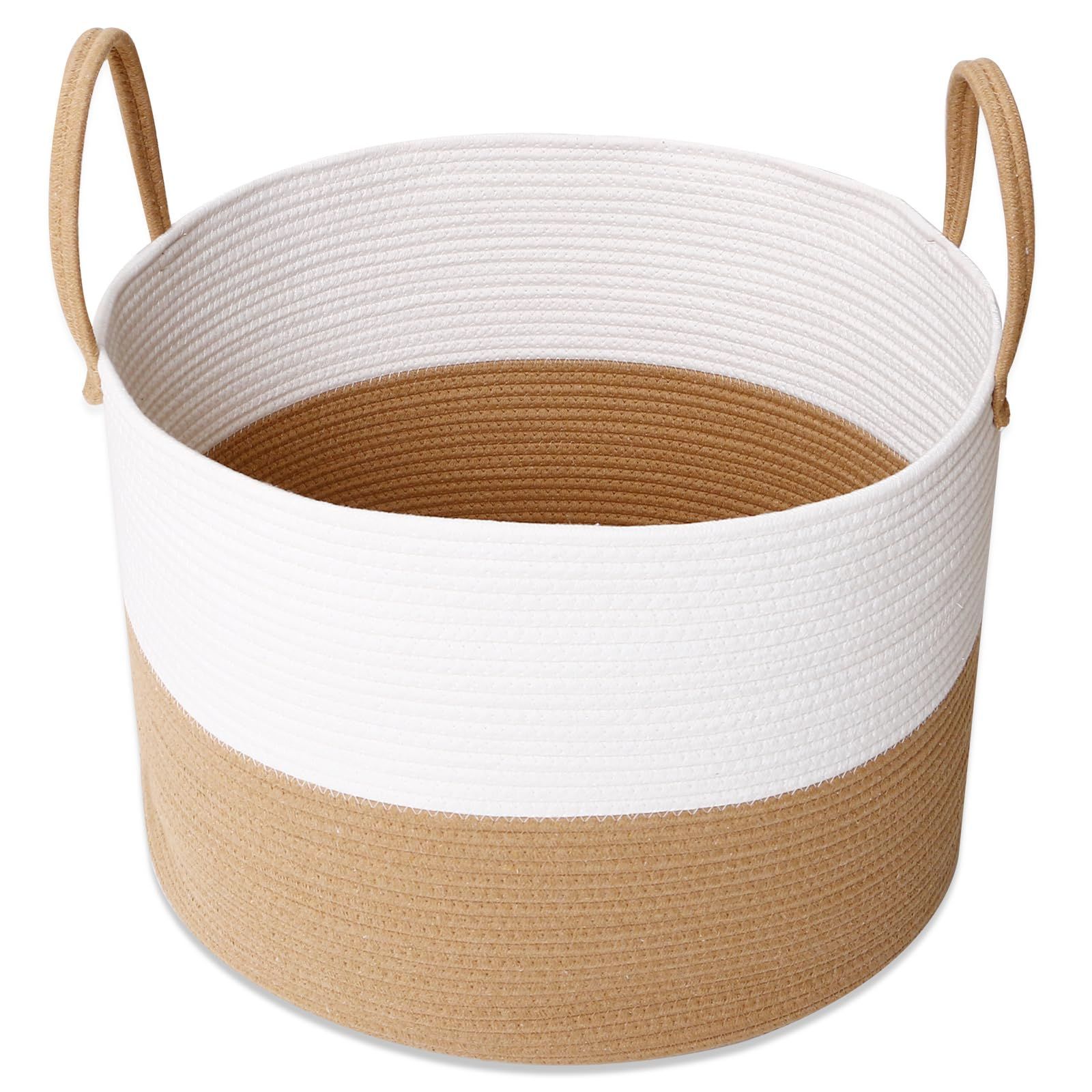 数量 オーガナイザーボックス ホーム ハンドル付き バスケット ストレージ 子供のおもちゃ 赤ちゃん部屋 服 キッズ ランドリーバスケット-直径55 高さ35㎝ 洗濯かご 大容量83L 織り ロープ コットン 大型収納バスケット YOSTORYA