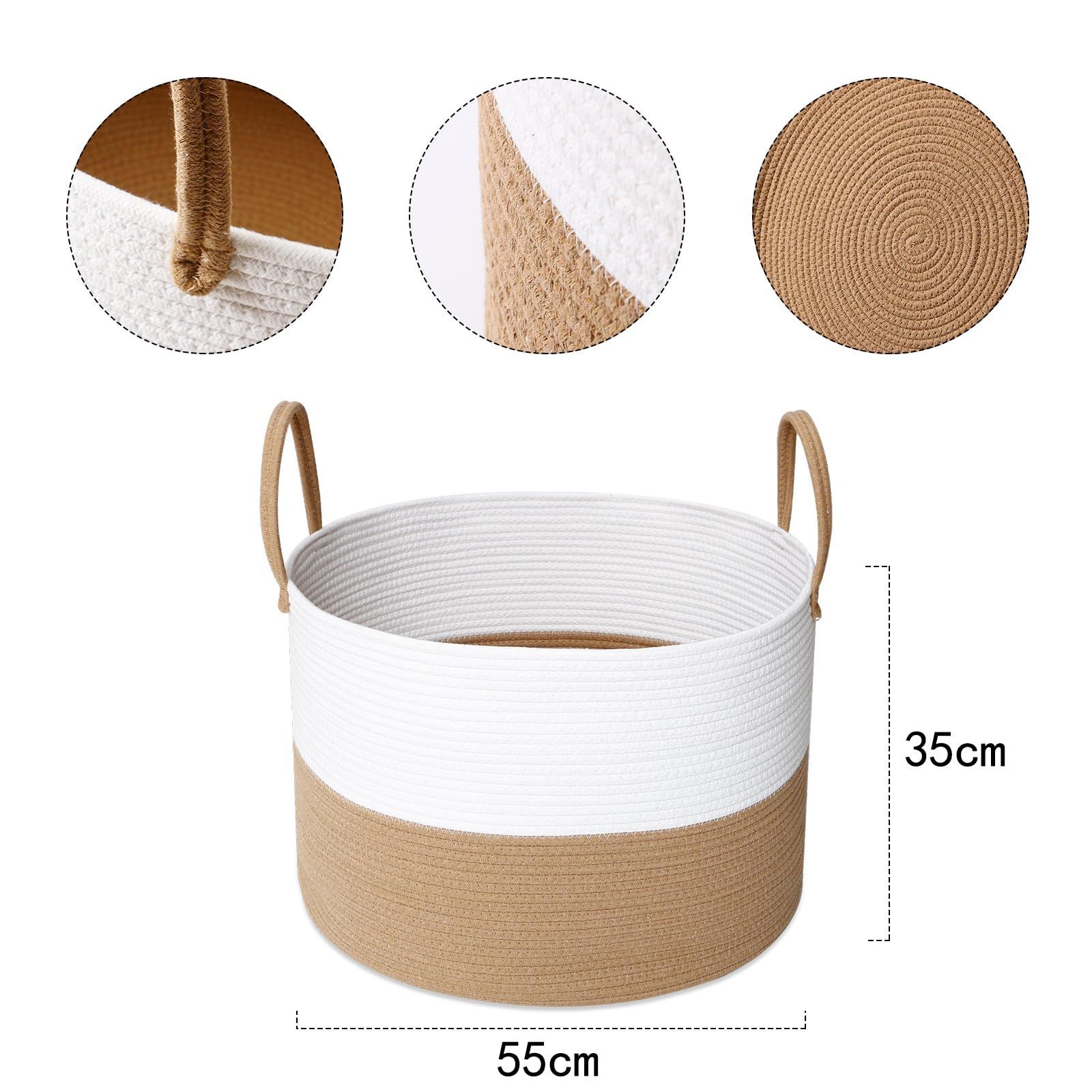 YOSTORYA 大型収納バスケット コットン ロープ 織り 大容量83L 洗濯かご ランドリーバスケット-直径55*高さ35㎝ キッズ 服 赤ちゃん部屋 子供のおもちゃ ストレージ バスケット ハンドル付き ホーム オーガナイザーボックス