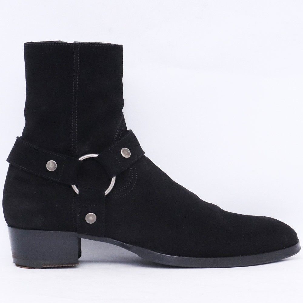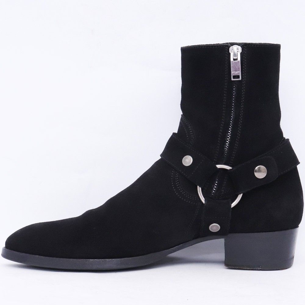 25cm相当 SAINT LAURENT ワイアット リングチェーン ハーネスブーツ サイズ40 ブラック WA443190 サンローラン スウェードレザー Wyatt Harness Suede Boot