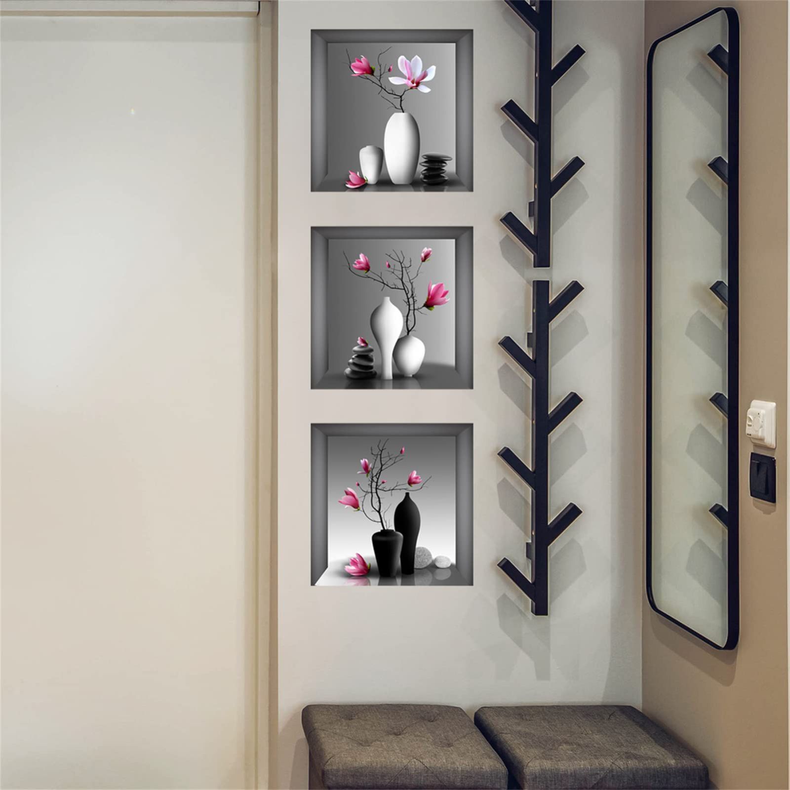 数量 ベッド リビング カフェ グレー 玄関 室内装飾 偽ウィンドウシール 壁紙シール 花飾り はがせる エレガント 北欧 ドライフラワー モノトーン ピンク 防水 白い花瓶 ウォールすてっかー おしゃれ 粘着剤付き ウォールステッカー 再利用 WO