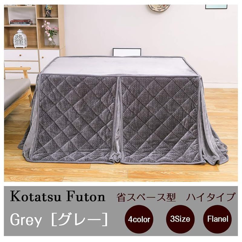 JEMAジェマ ハイタイプ テーブル ダイニング 省スペース こたつ布団 こたつ掛け布団 掛け布団単品 吸湿発熱 ふわふわ感触フランネル生地 約240x295cm 長方形 洗える ケーブル グレー
