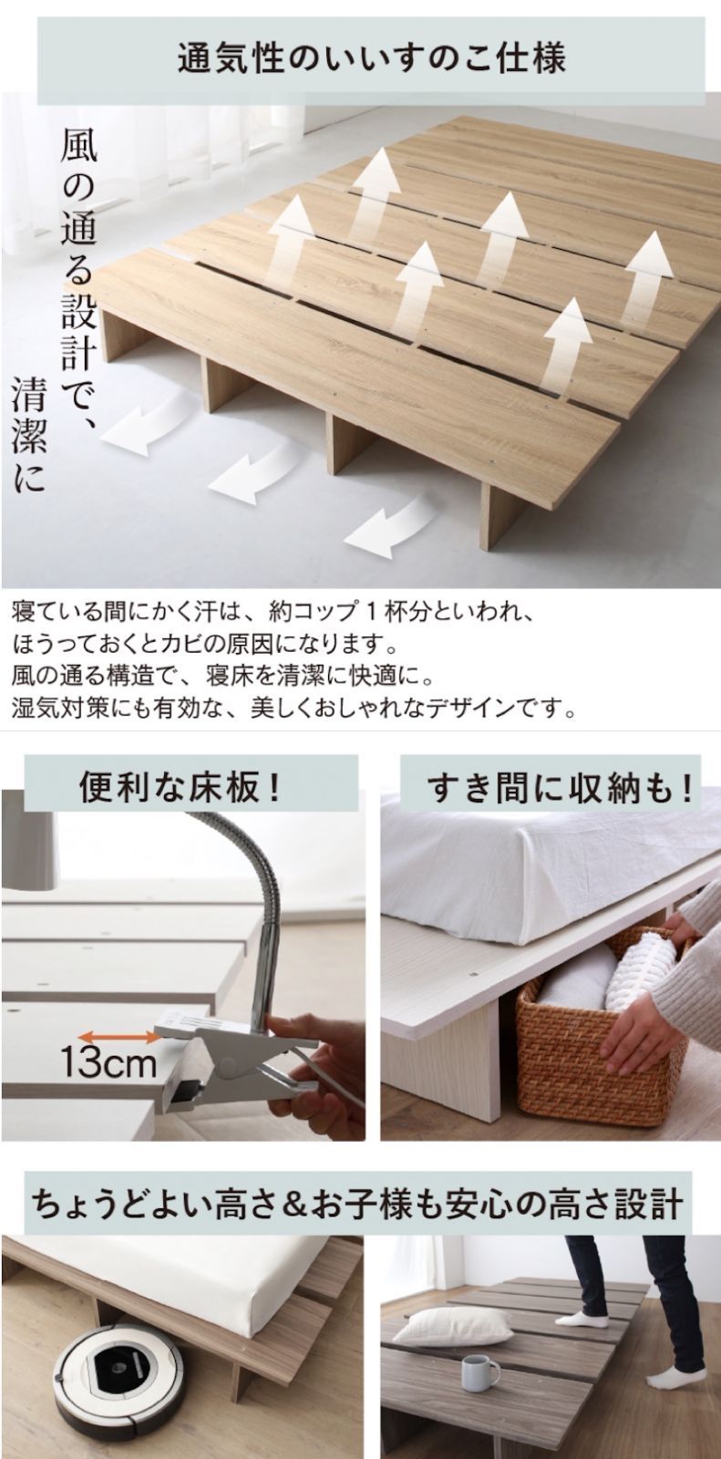 頑丈すのこ構造 → 通気性抜群で湿気対策も安心