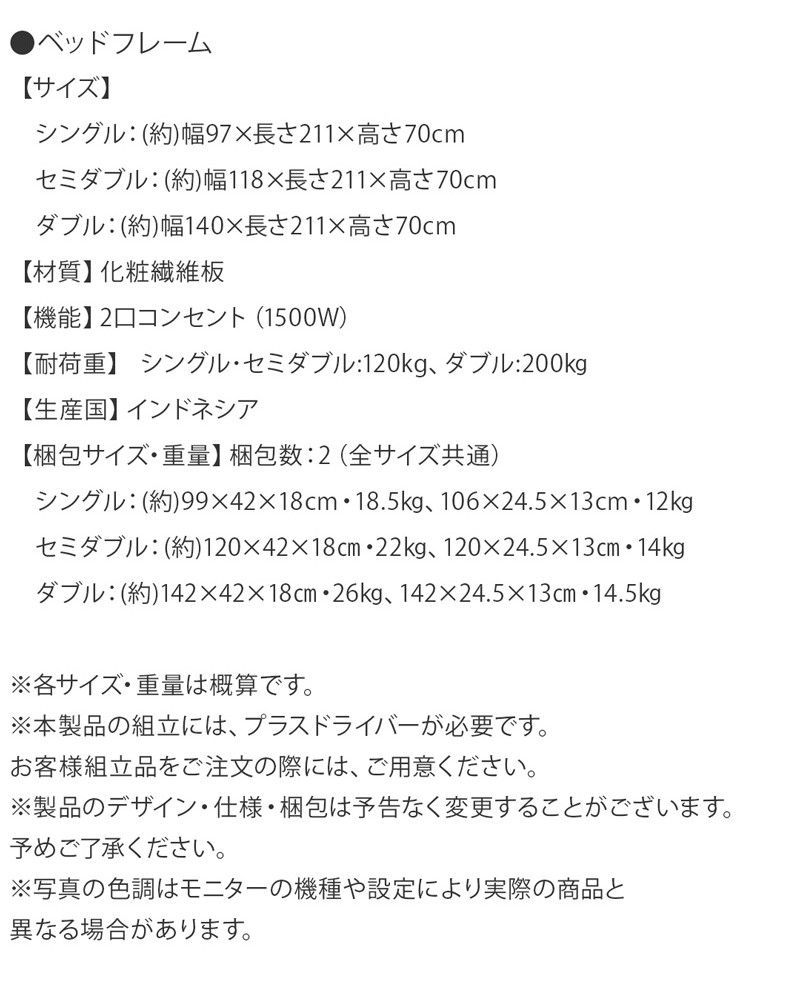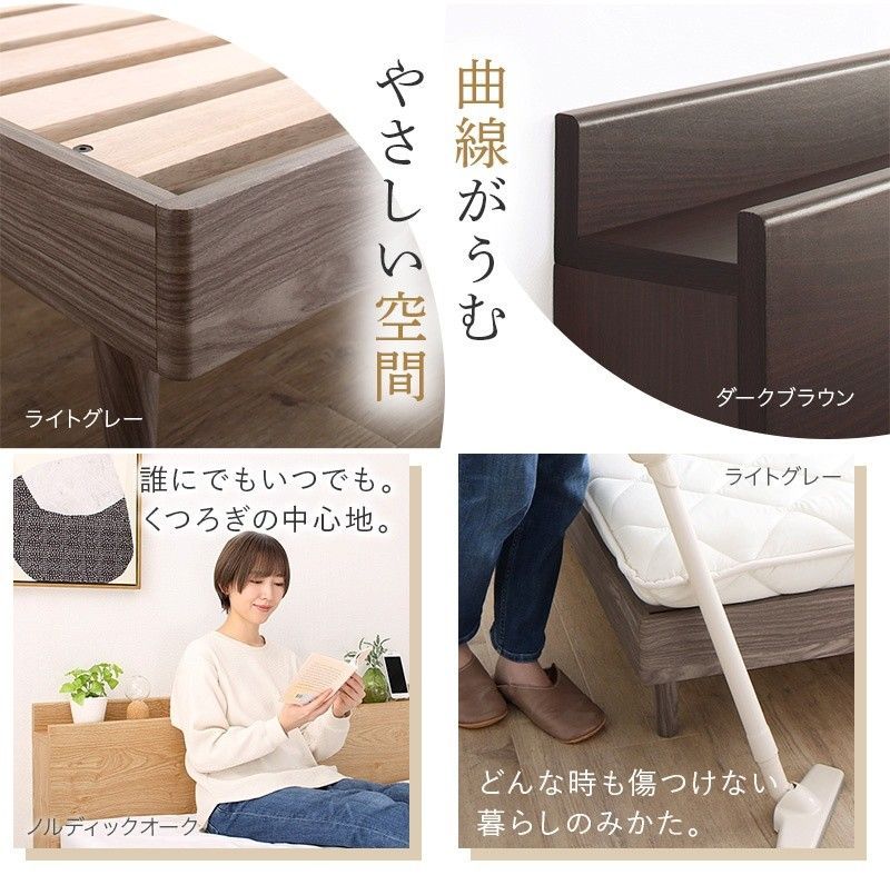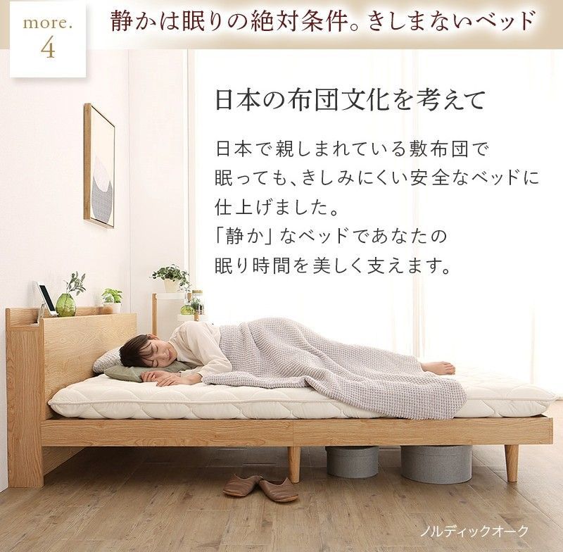 すのこベッド フレームのみ セミダブル ノルディックオーク 棚 宮 ヘッドボード 脚付き コンセント ベッド ベッドフレーム 無垢 すのこ 収納 木製ベット 頑丈 通気性 布団が使える おしゃれ 新生活