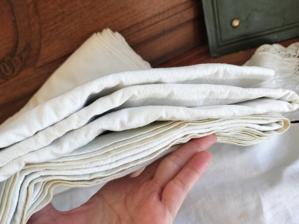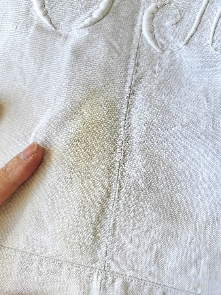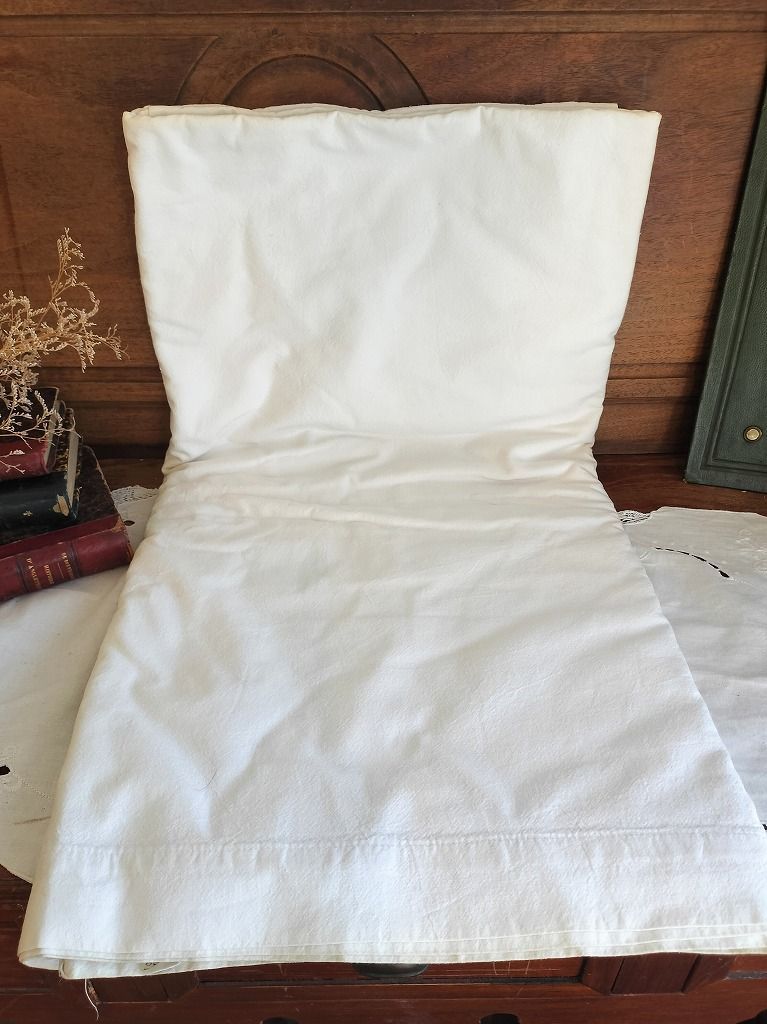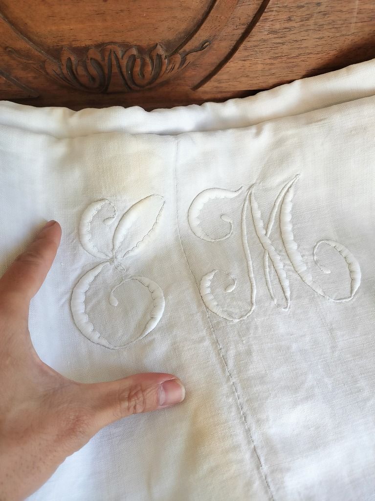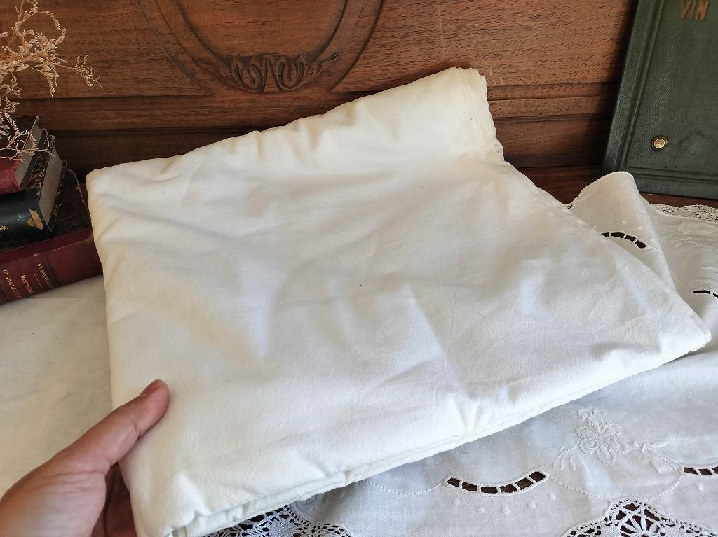 フランス アンティーク リネン 無地 シーツ モノグラム 刺繍 203 x290cm