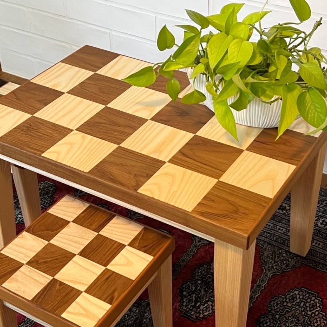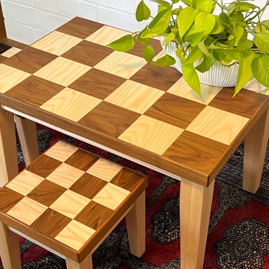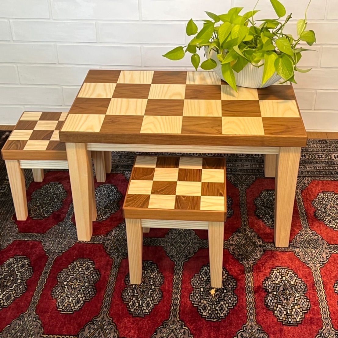 市松模様木製ミニテーブルセット 椅子2脚付 チークタイプとチークホワイトアッシュタイプの2種類