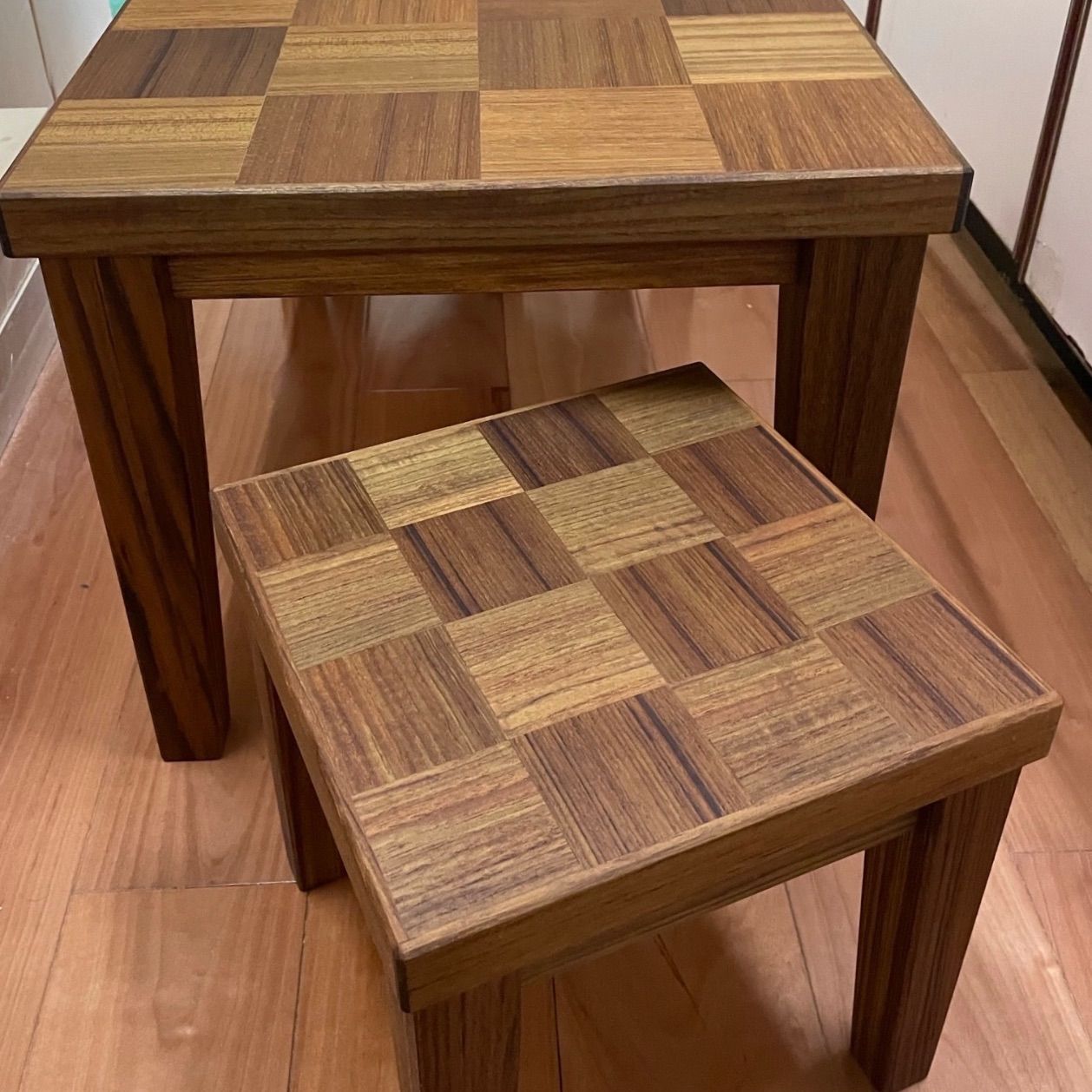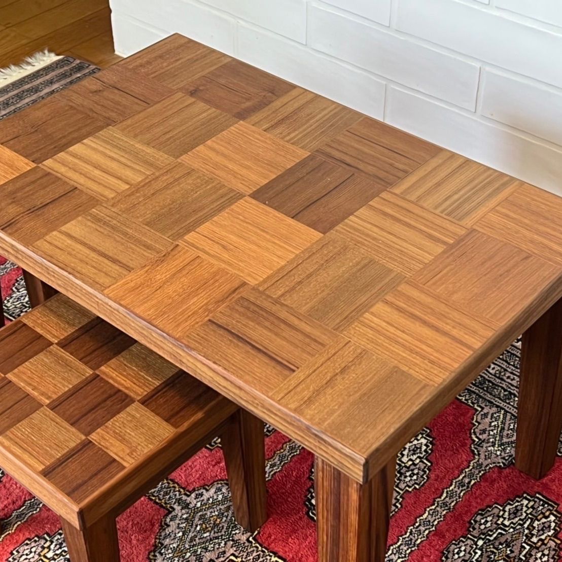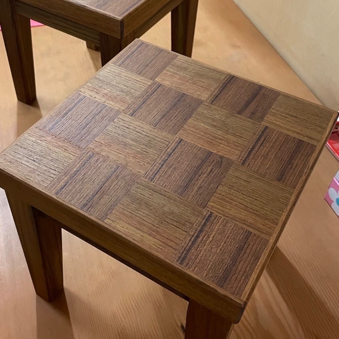 市松模様木製ミニテーブルセット 椅子2脚付 チークタイプとチークホワイトアッシュタイプの2種類