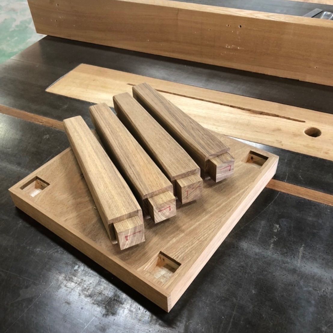 ☆オール無垢材ですが少し工夫しており、重量軽減化の為にテーブルと椅子の天板部分はあえて桐無垢材をサンドイッチしてます。