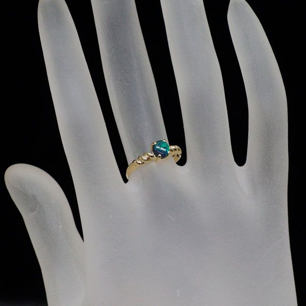 ブラックオパールを1ピースセットした、シンプルなデザインのイエローゴールドリング。ブラックオパールには目立つ傷なども無く、鮮やかなグリーンカラーと深みのあるブルーカラーの遊色が幻想的な輝きを放つ魅力的な一品です。女性らしさがより甘美に際立つ神秘的なブラックオパールの輝きを、ぜひカジュアルにもお楽しみください。