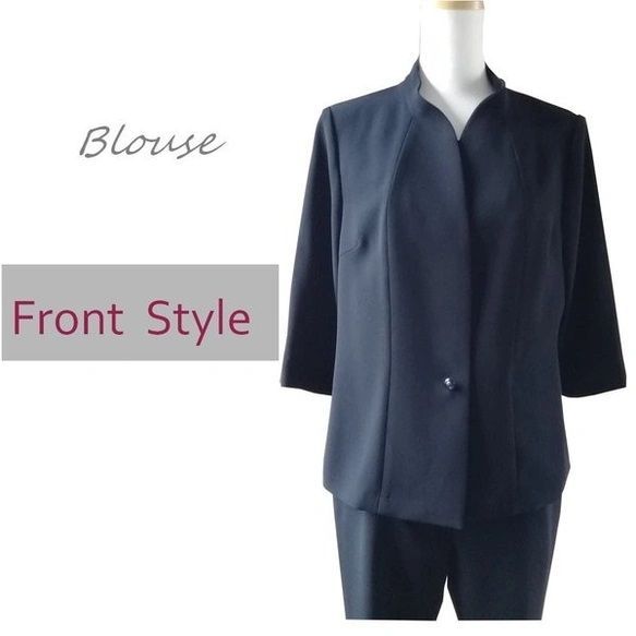 優しい印象のシックなパンツスタイルのスリーピースです。