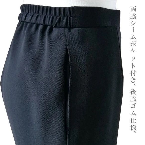 パンツ:前ファスナー開き ウエスト脇ゴム仕様 両脇ポケット付き 裏付き