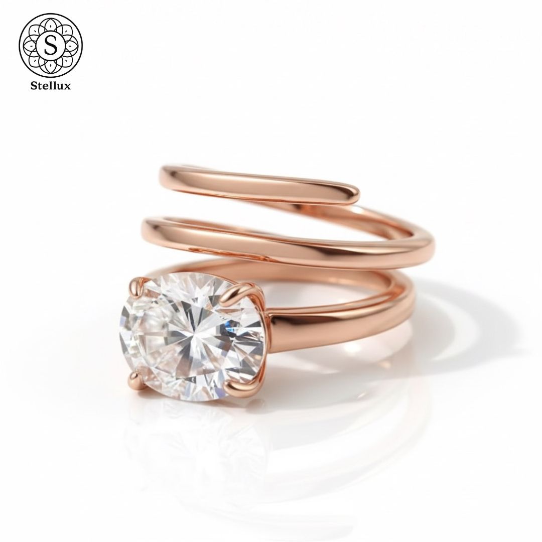 1ctが映えるローズゴールド モアサナイトリング スパイラルデザイン 18K RGコーティング オーバルカット 指先美人見え 大人 レディース人気 GRA鑑定書付き