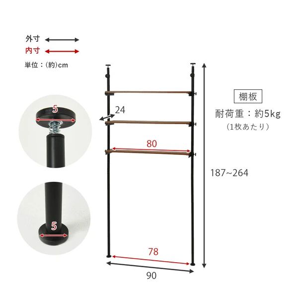 ■本体サイズ:(約)幅90×奥行24×高さ187〜264cm■組立式■棚板3枚