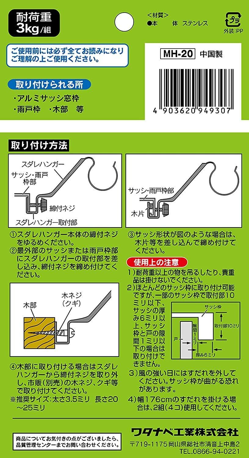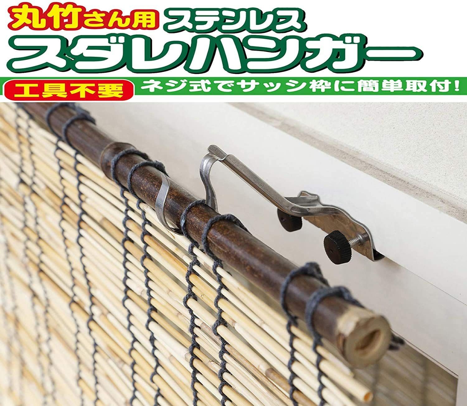 ネジ式でサッシ枠に簡単取付、丸竹さん用のステンレススダレハンガー。