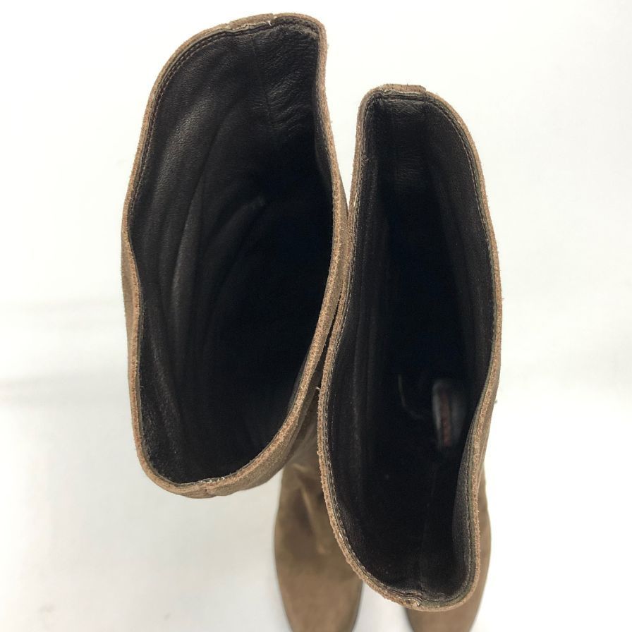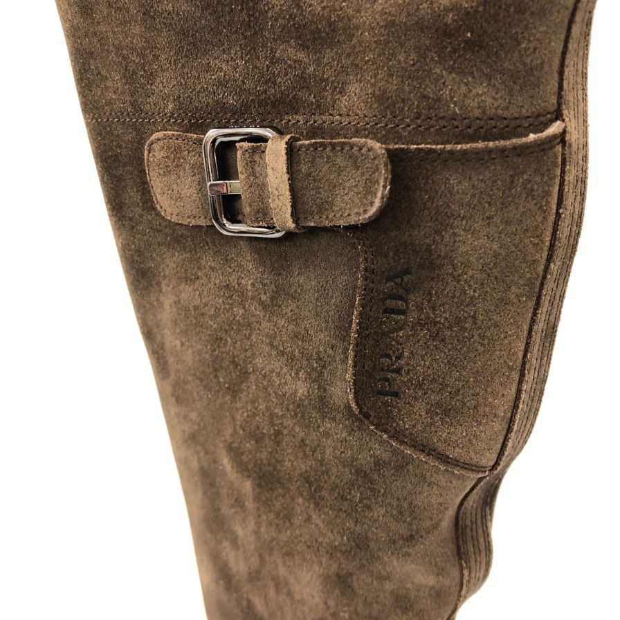 プラダ ニーハイ ブーツ スエード インサイドジップ サイドベルト ゴムソール レディース サイズ35 ブラウン PRADA