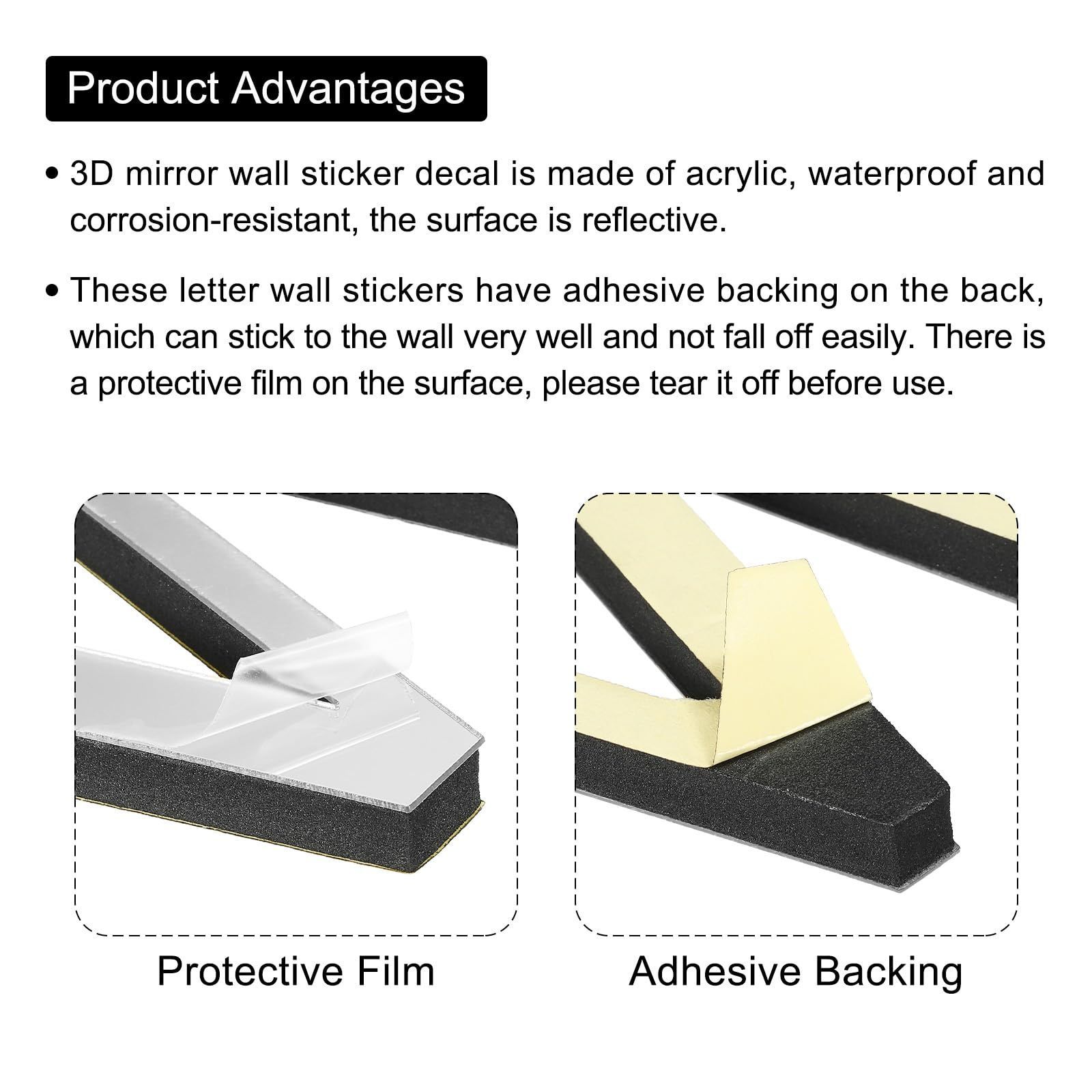 1.3D ミラー ウォール ステッカー デカールはアクリル製で、防水性と耐腐食性があり、表面は反射性があり、壁にミラーの効果を見せることができます。