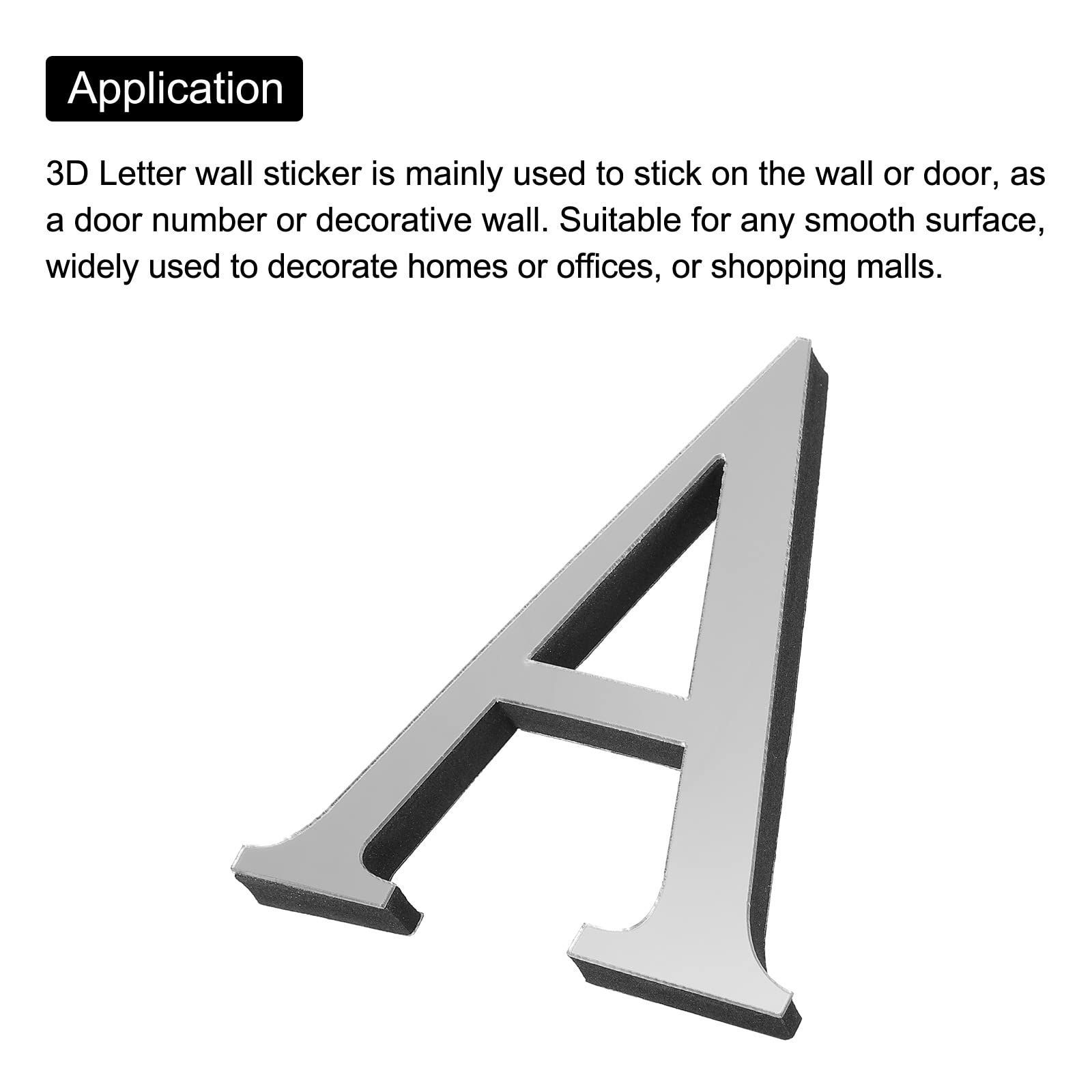 PATIKIL 3Dアルファベットウォールステッカー レターA 自己粘着 家の装飾レター サインアートステッカーデカール DIYホームデコレーション用 シルバートーン