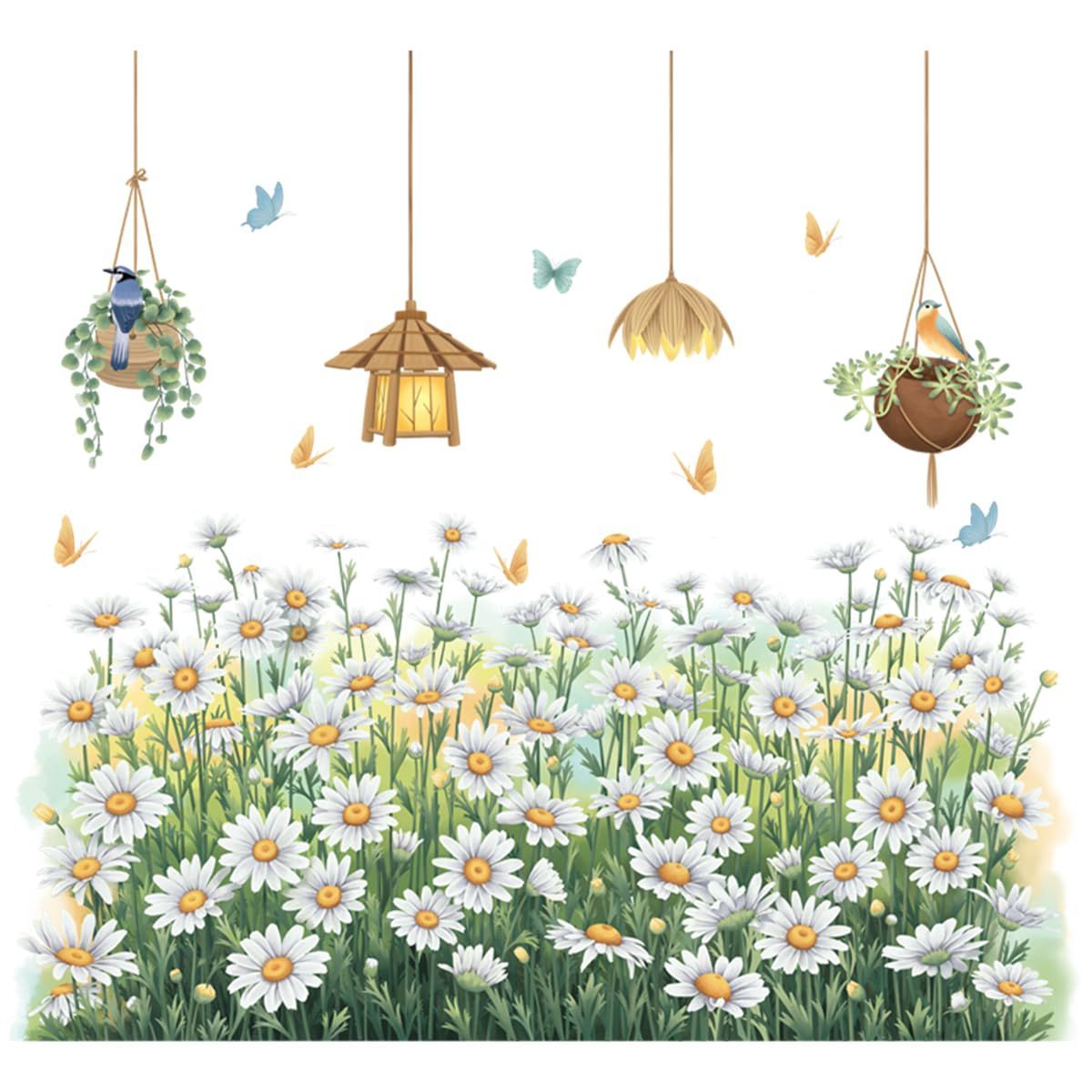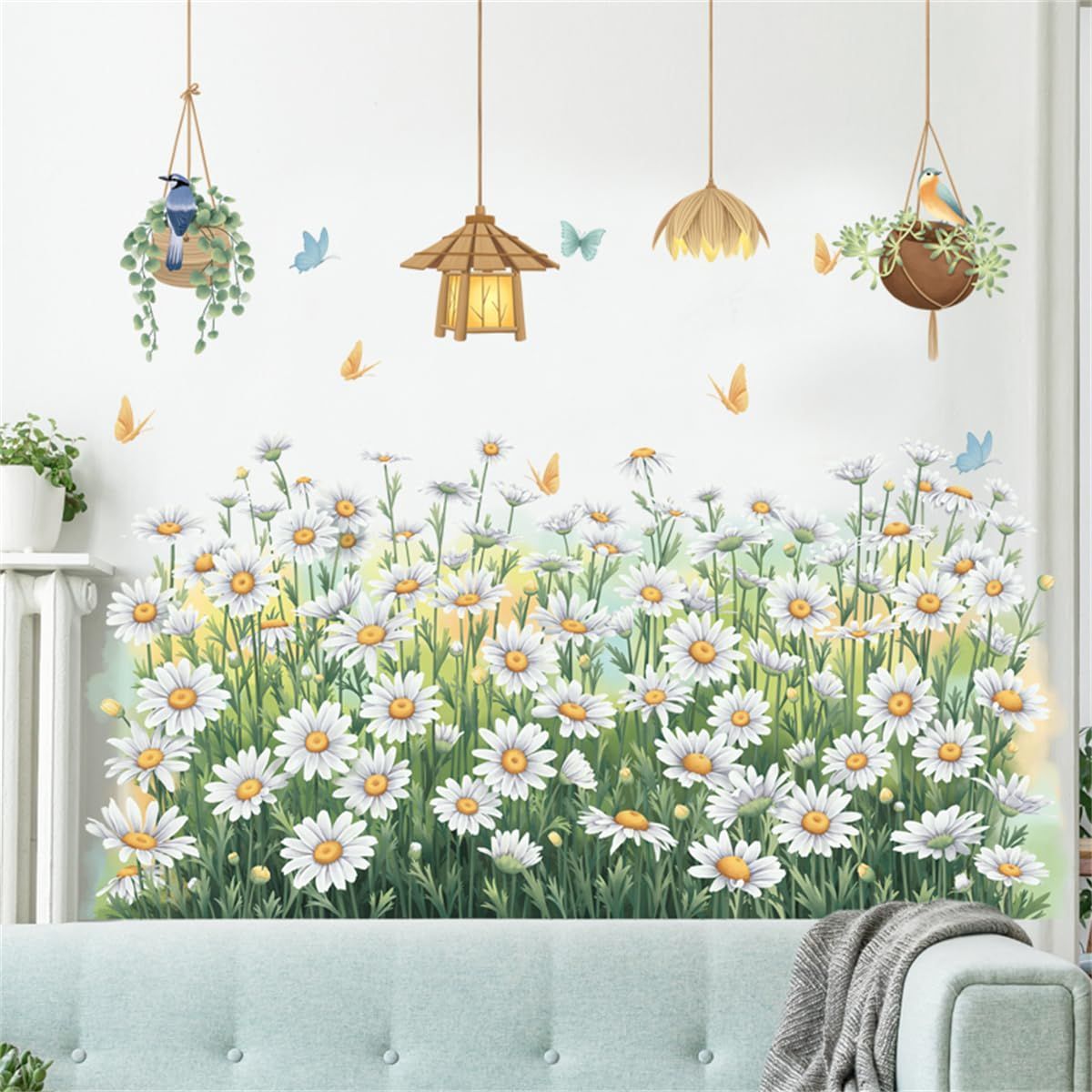 HOTIYOK ウォール ステッカー 植物 白 デイジー おしゃれ 壁 インテリア ウォール シール 鳥 蝶 吊り蘭 新鮮な花 壁ウォールステッカー ソファ ベッド 壁の装飾 ステッカー 壁紙シール はがせる おしゃれ 北欧 モノトーン 大きい 壁 シール 剥がせる wall sticker decoration wall sticker 御洒落ウォールアート 飾り ウォールデコ 寝室用