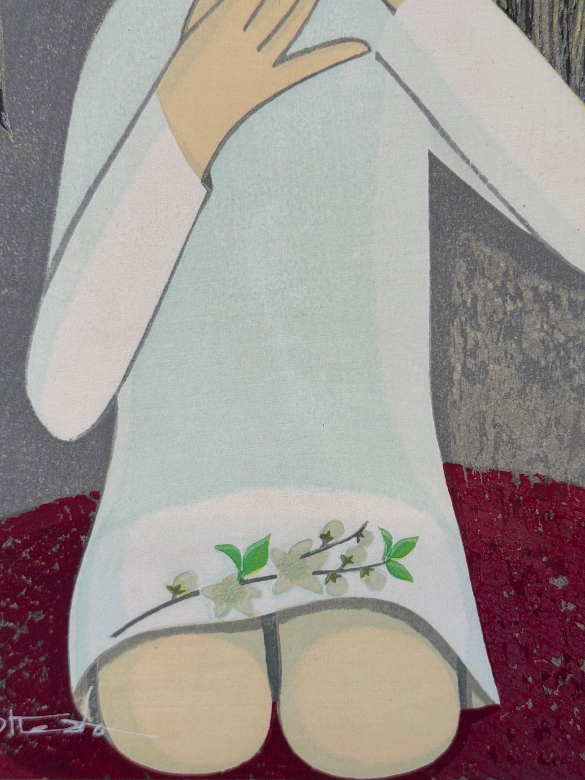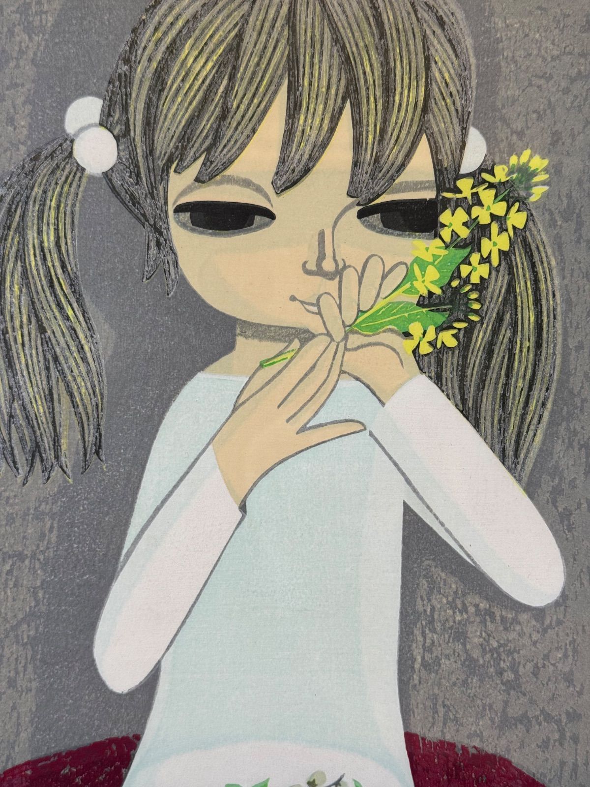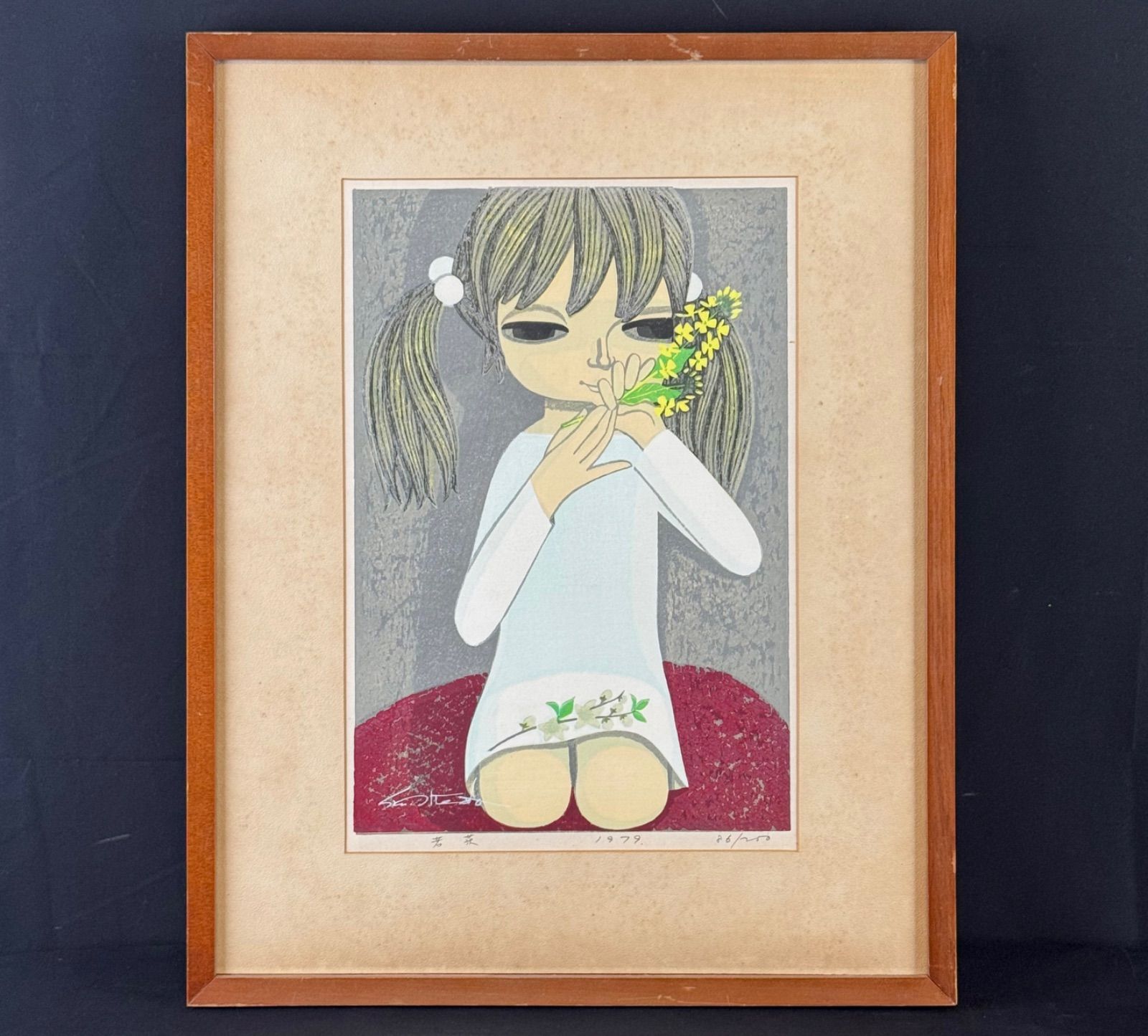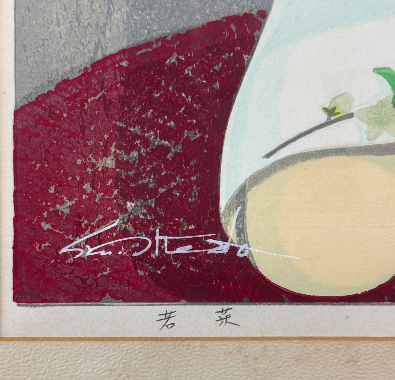 池田修三 若菜 木版画 5号 1979年 版上サイン 人気木版画家 秋田県ゆかりの画家