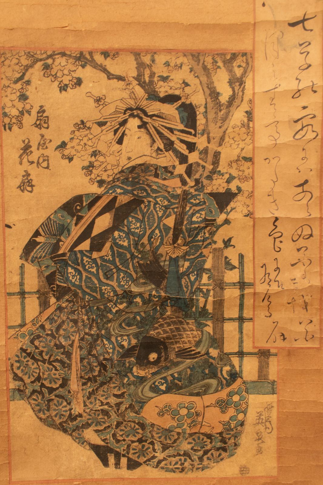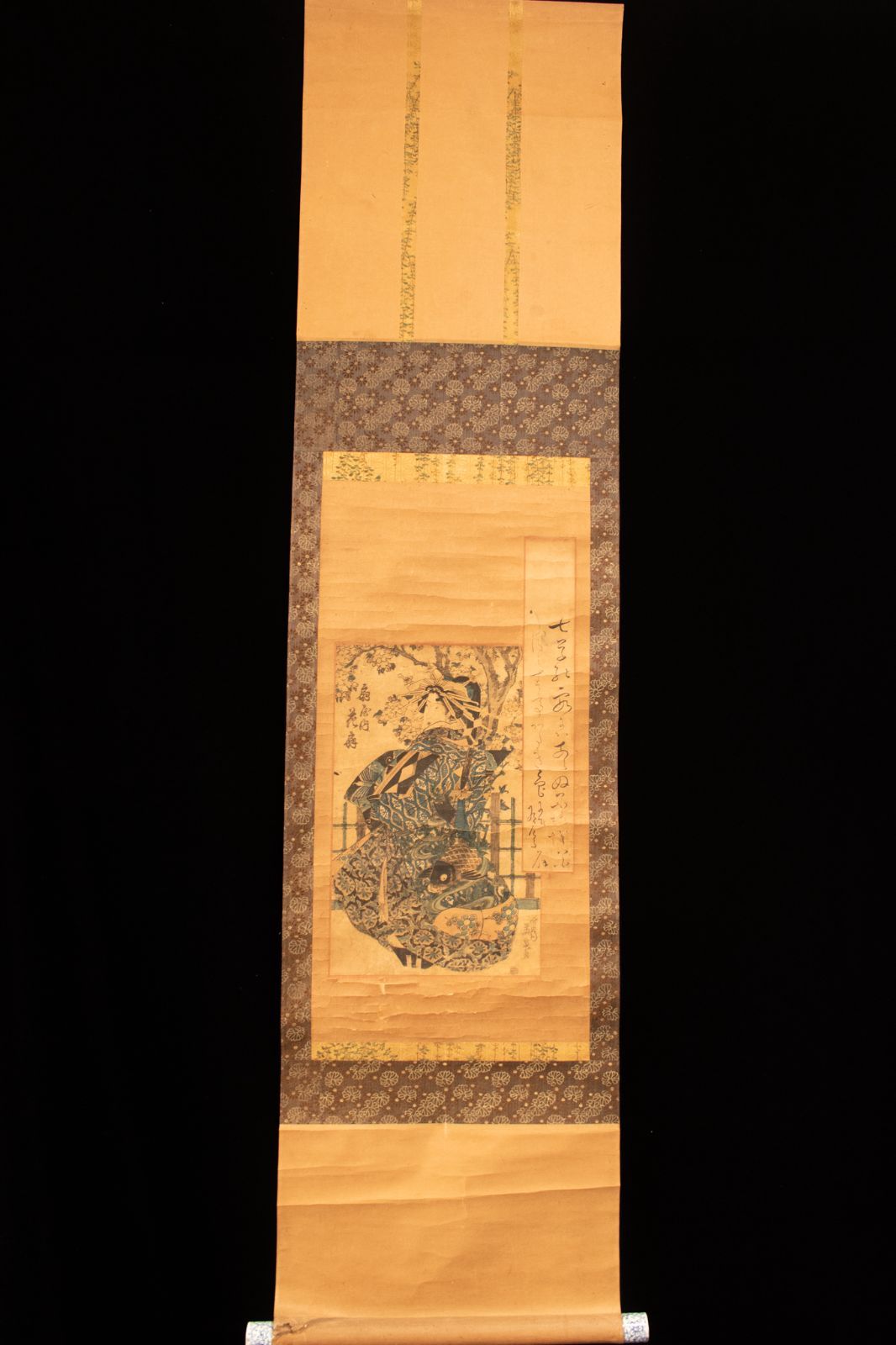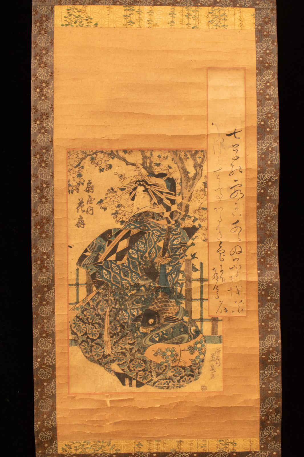 M 渓斎英泉 扇屋内花扇 江戸 嘉永 掛け軸 花魁 遊女 版画 浮世絵 錦絵 美人画 K00549