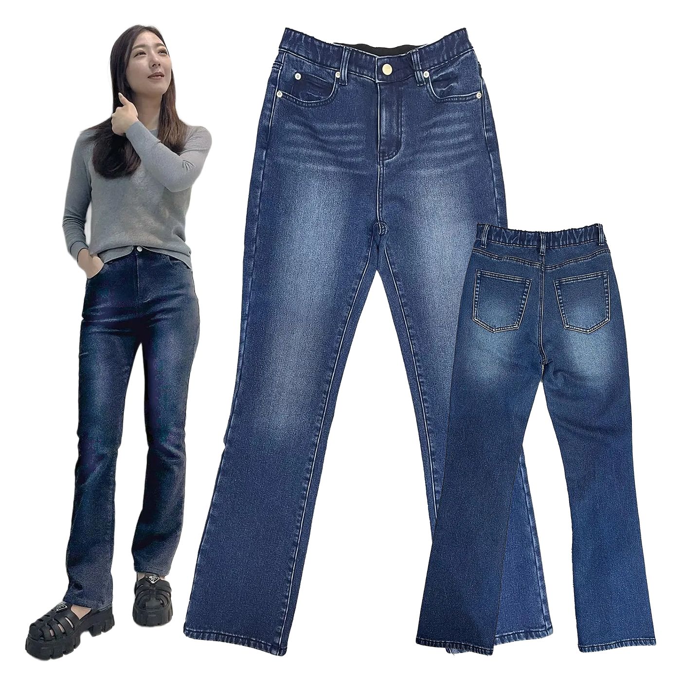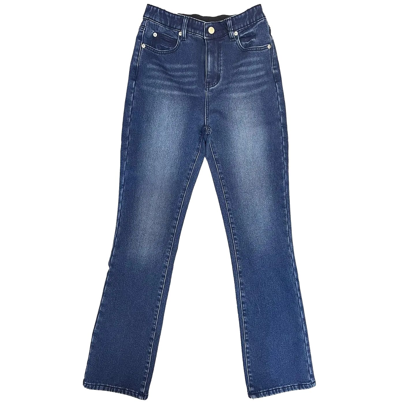 INDIMARK デニム セミフレア ブルー 裏起毛 ストレッチ カットデニム ジーンズ レディース ウエストゴム おしゃれ ブランド かわいい ベーシックブルー XS S M L XL (WKH007)【お取り寄せ】