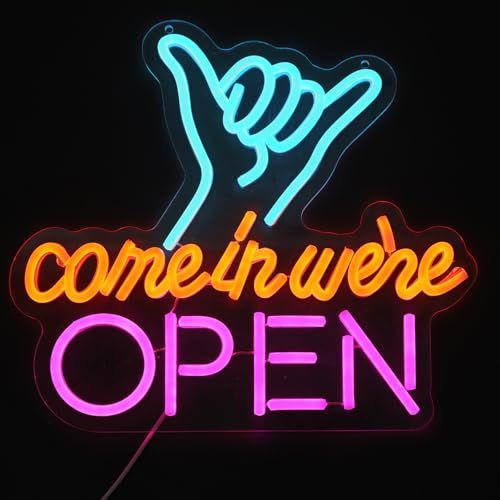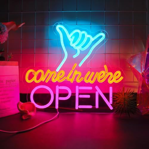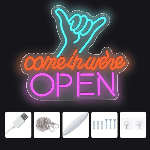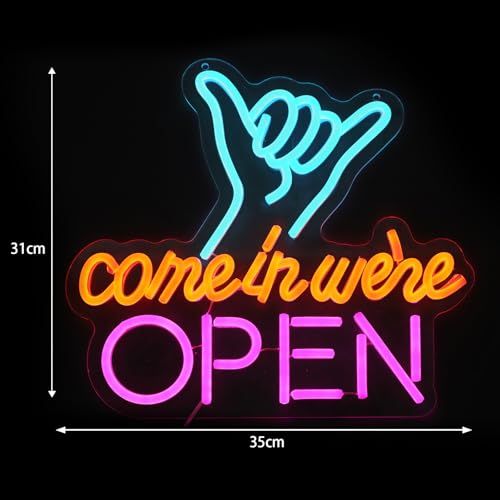 ENUOLI LEDネオンサイン ネオンライト オープンネオン カフェネオン看板 open ネオン 35x31cm 調光 USB給電 壁掛け Come in we re OPEN 看板 3色発光 店舗 バー