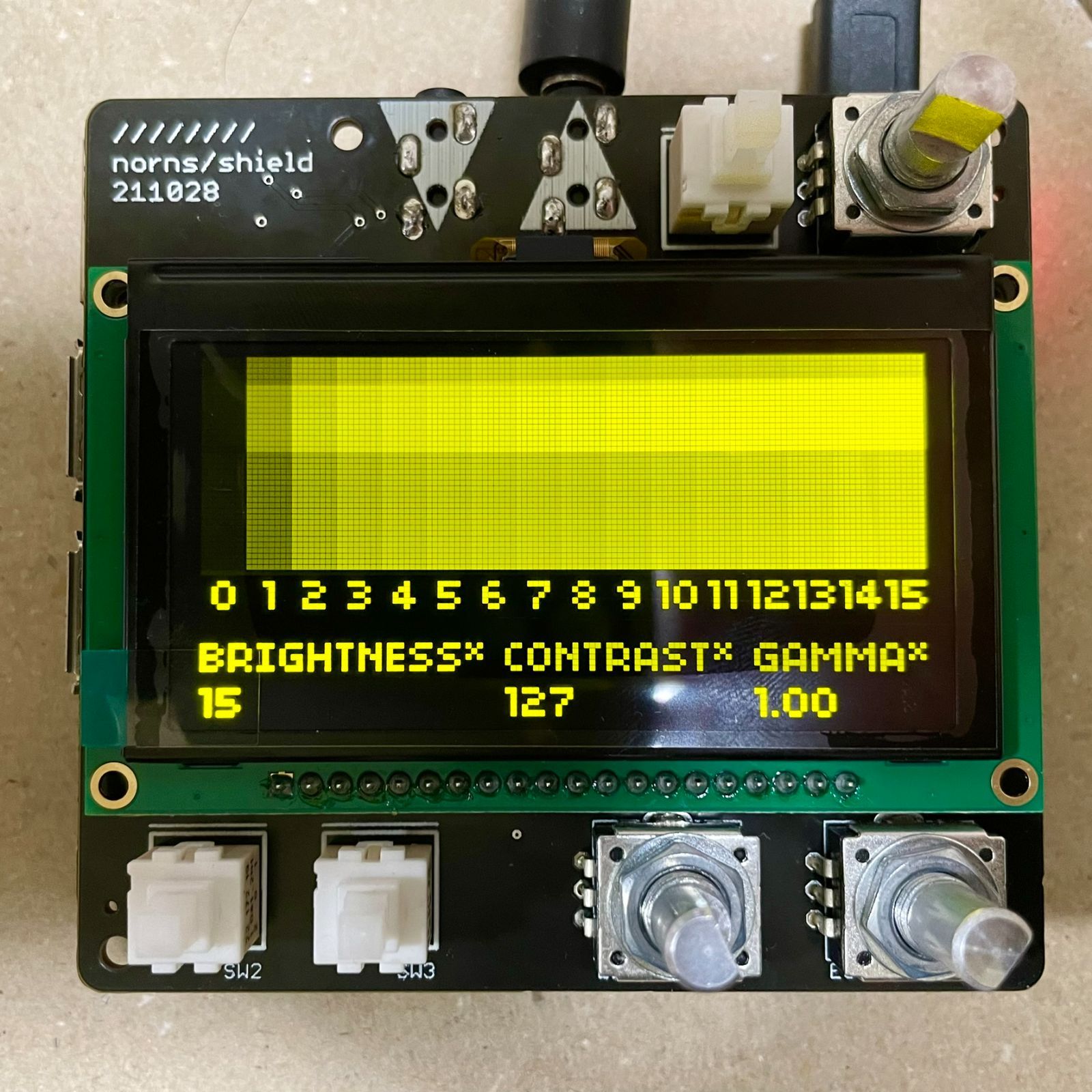 norns shield (ver. 211028) 本体完成品 のみです。エンコーダーのつまみは付属しません。プッシュスイッチのキャップが付属します。