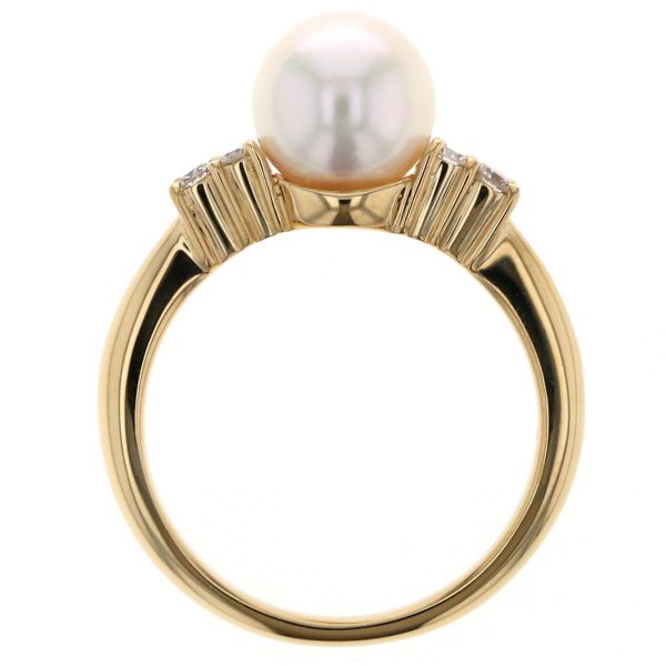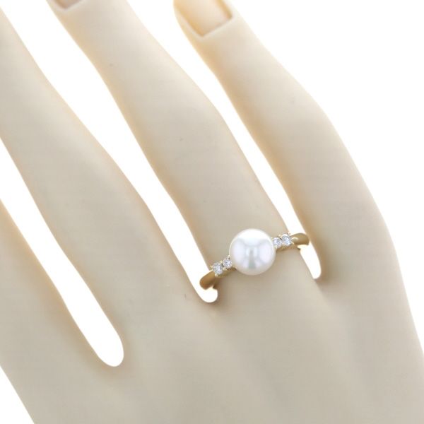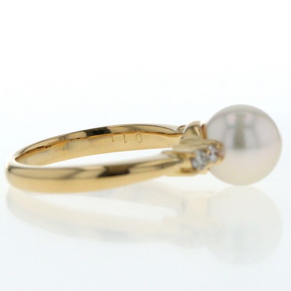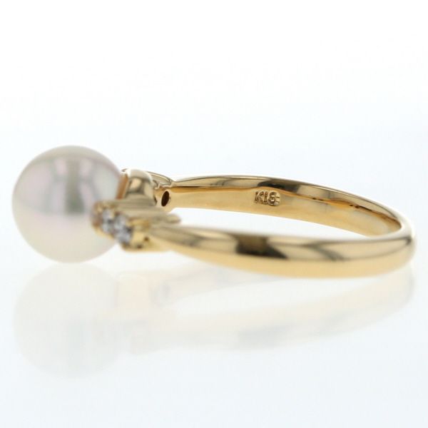 K18YG イエローゴールド リング パール 真珠 7.6mm ダイヤモンド 0.11ct サイドストーン 指輪 10号 仕上済 zz