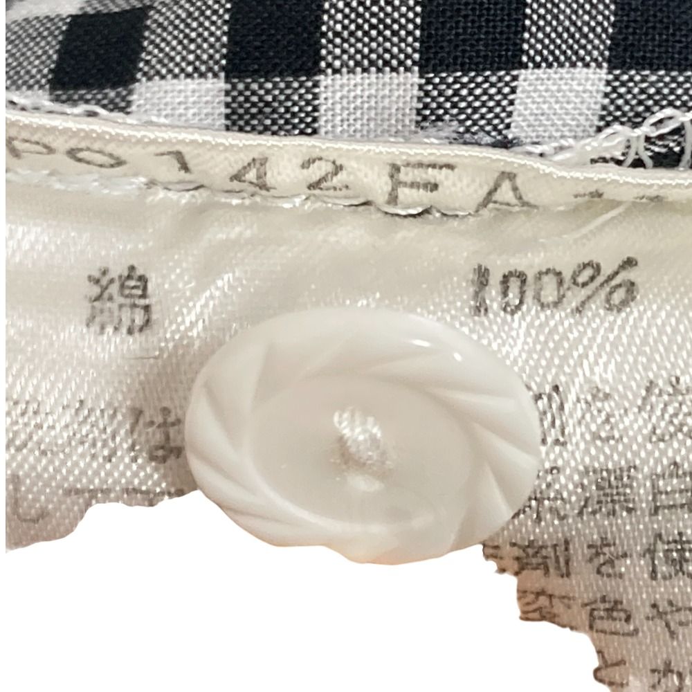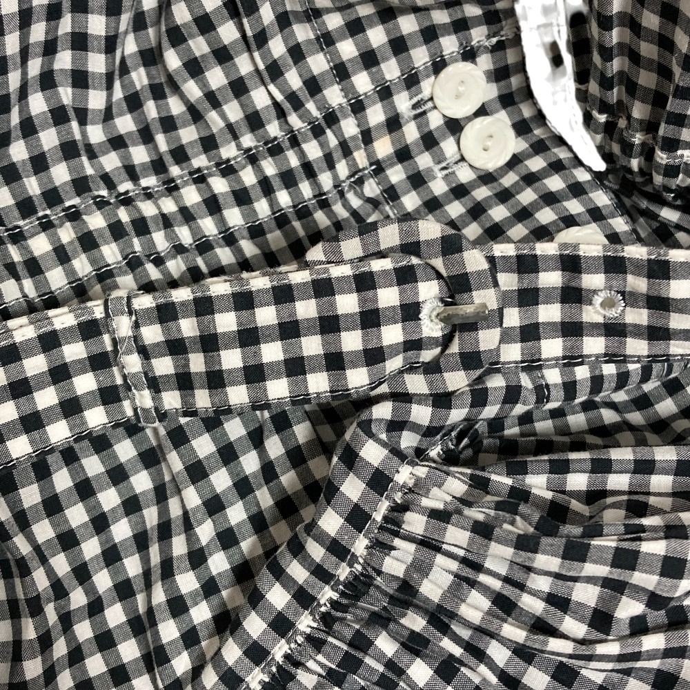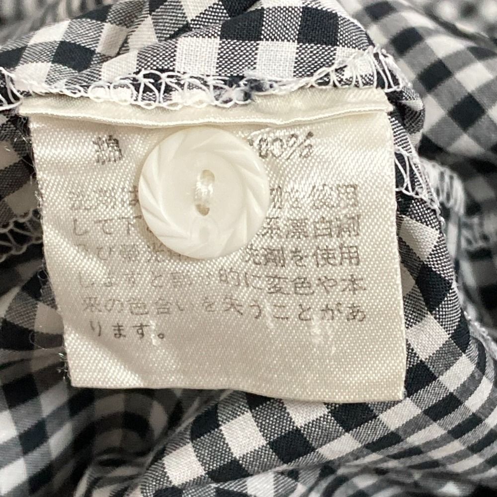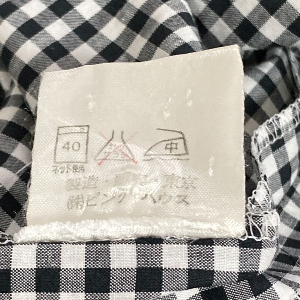 PINK HOUSE ピンクハウス ギンガムチェック ラウンドカラー 白襟 半袖 ロング シャツワンピース ブラック レディース 古着