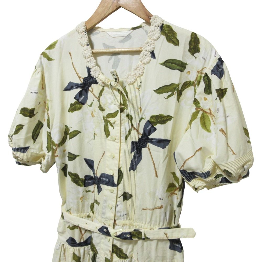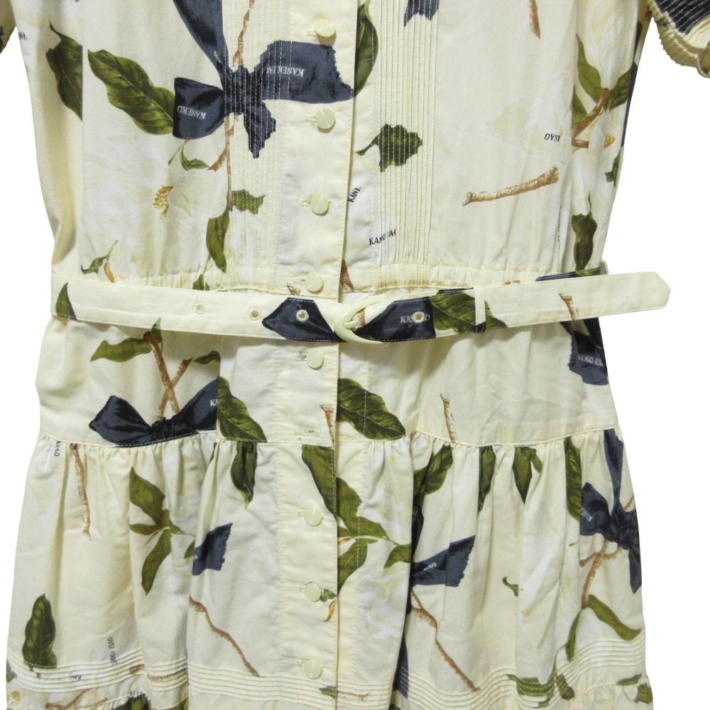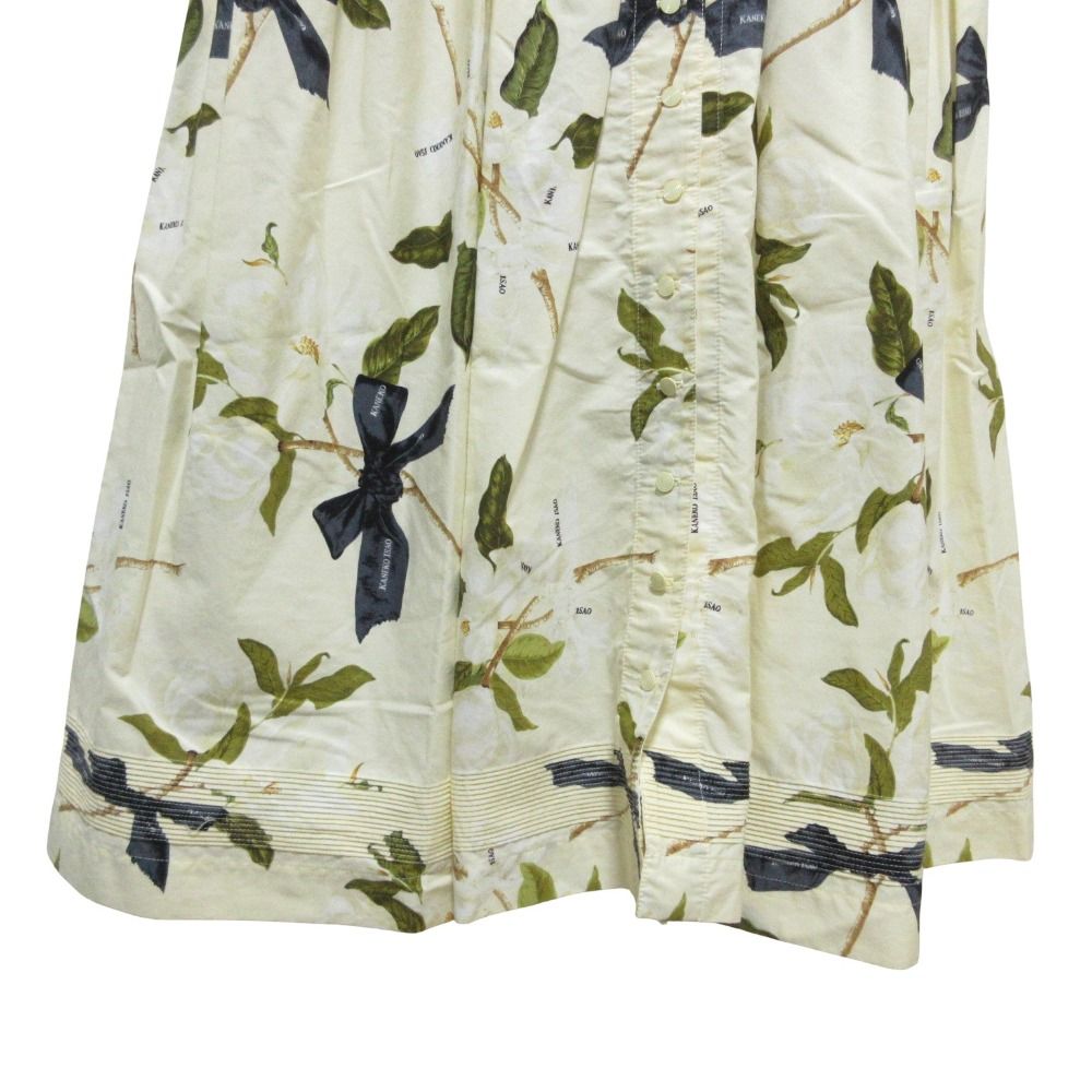 【商品名】KANEKO ISAO カネコイサオ リボン フワラープリント 半袖 ロング ワンピース アイボリー